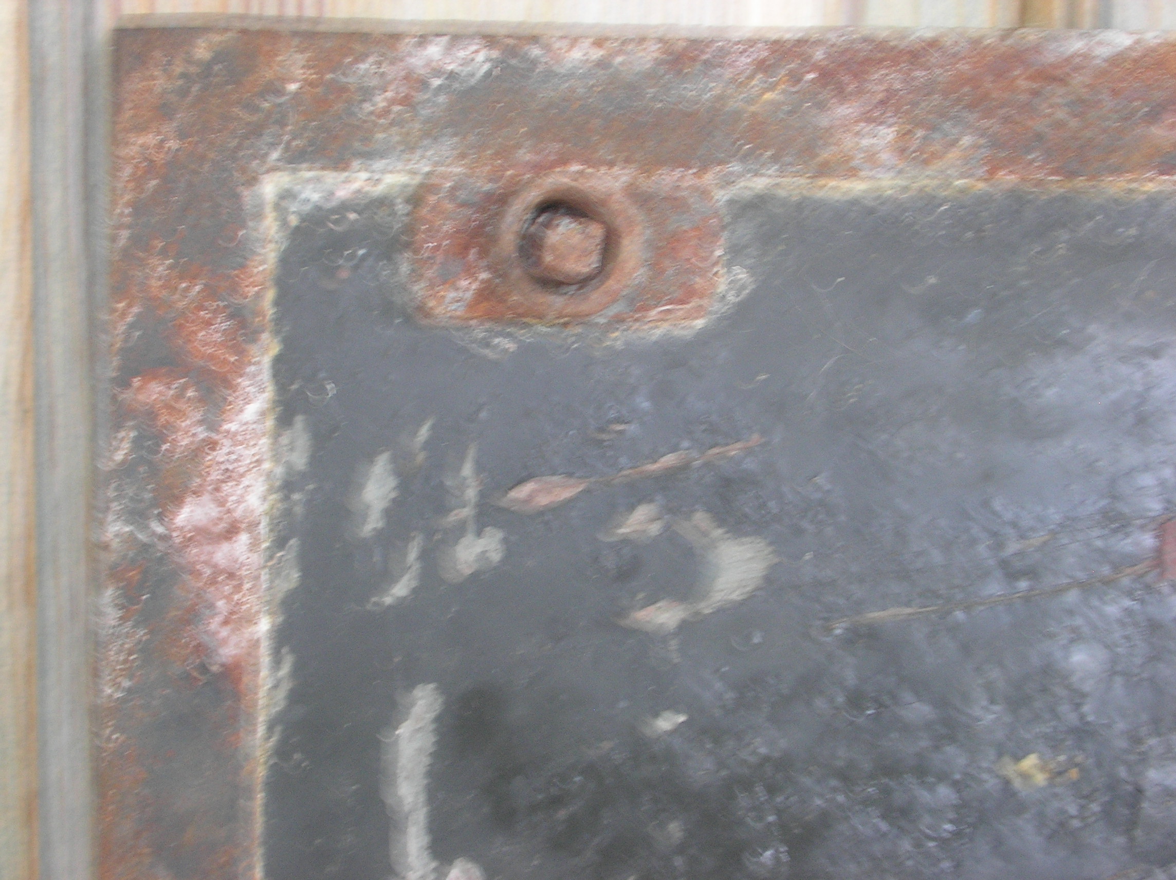 This plaque is quite impressive, being triangular and about 4 inches on each side. It is made of aluminum and is hollow-backed, being pressed out.