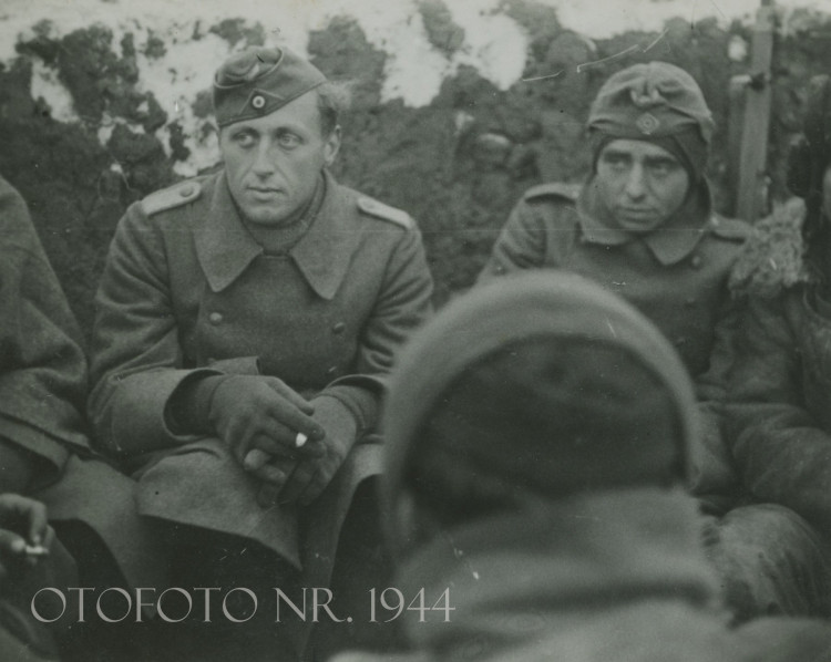 Saksad tegid ka tublid liigud veel peale. Veel saavad allohv. Jõeveer [Johannes Jõeveer] ja rms. Vaher Villem. Rms. Käsper Hugo sai minuga ühes. Seega siis 6 meest meie kompaniist. Sarnase arvuni pole jõudnud ükski teine pataljon. Aga on ka peaaegu nii, et kes ei saanud puuristi saab raudristi. Ja me pole ju veel omadega mäel. Millal vahetus tuleb ei tea keegi. Söök ka läks väheks 400 gr. leiba päevas. Ei suppi, ei teed. Veidi juustu ja konservi maitseks.