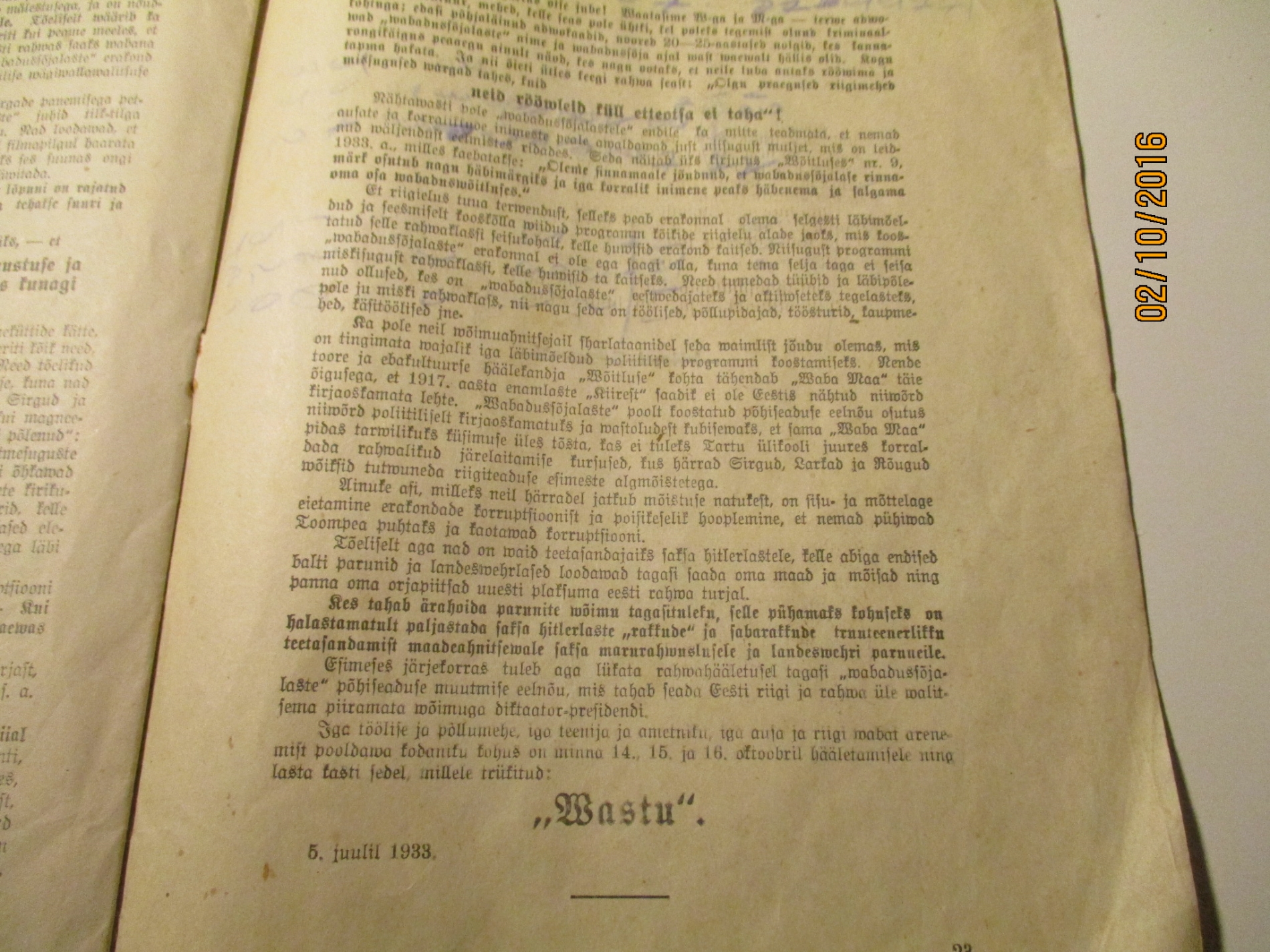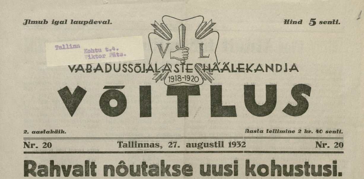 Tundub, et tapeeti pandi õigel ajal, sest 12. märtsil 1934 likvideeriti Eesti Vabadussõjalaste Liit ja arreteeriti selle aktiviste.