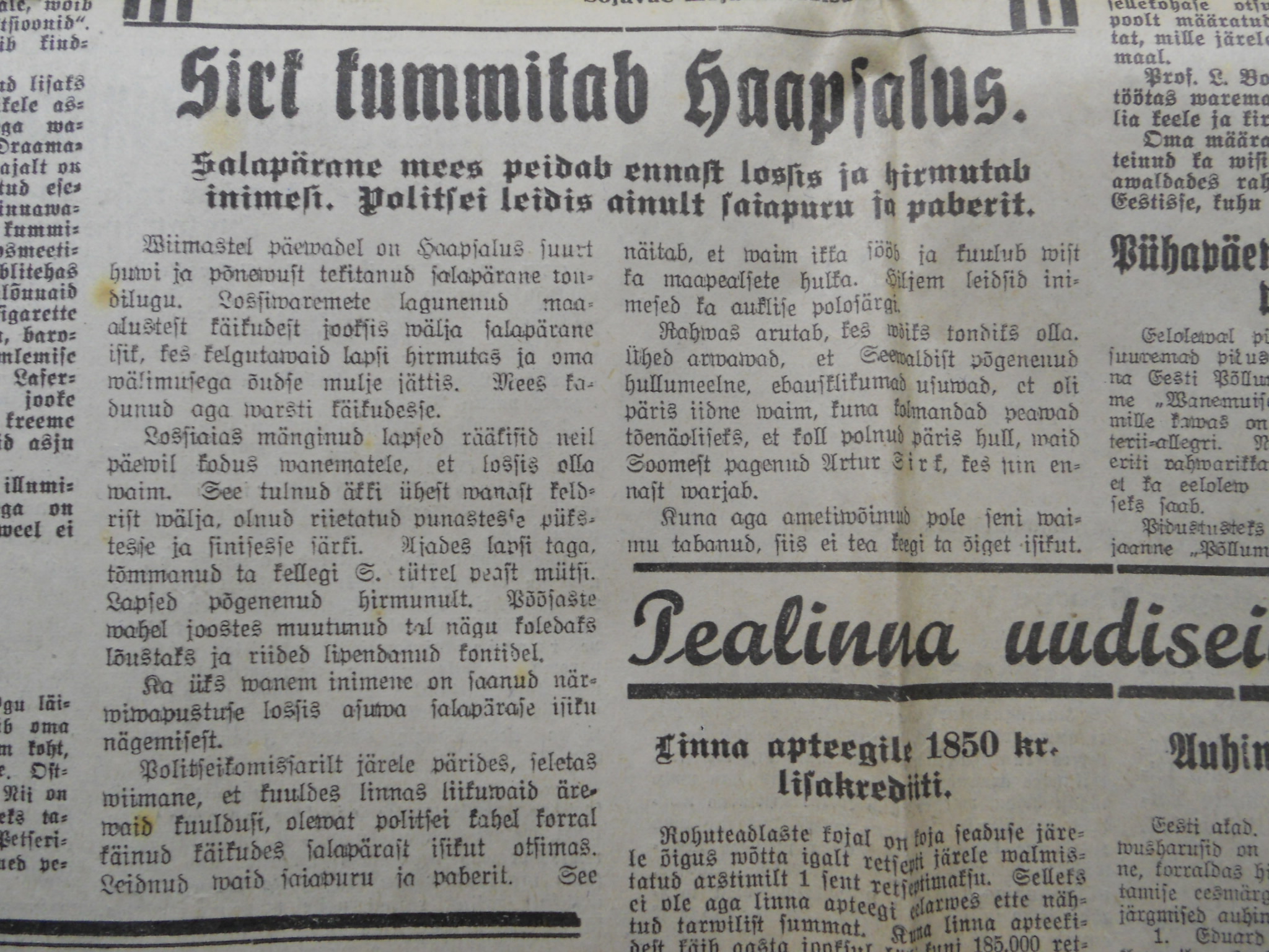 Käiselint, mis leiti suvel ühest Kernu valla majast. Oli pakitud 1934. a märtsikuu ajalehe sisse ja peidetud tapeedi alla.