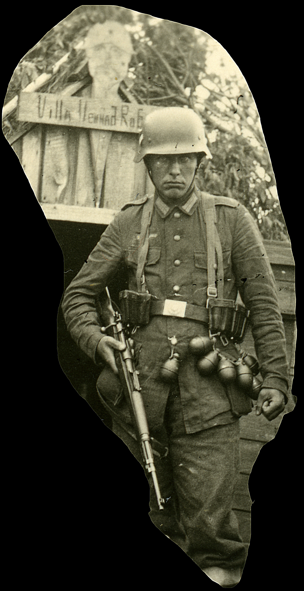 Teise tegelasega sott selge, EW müts ja saksa sinel.