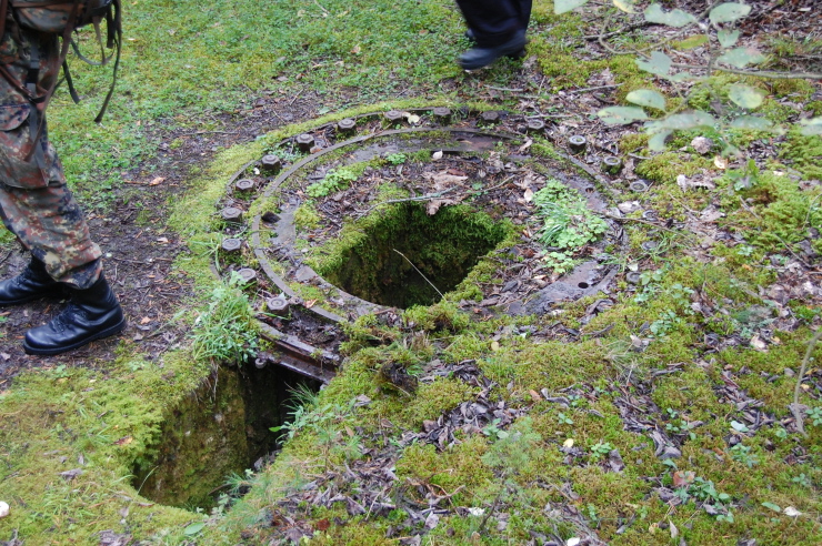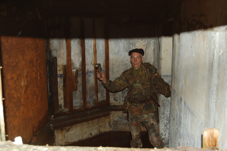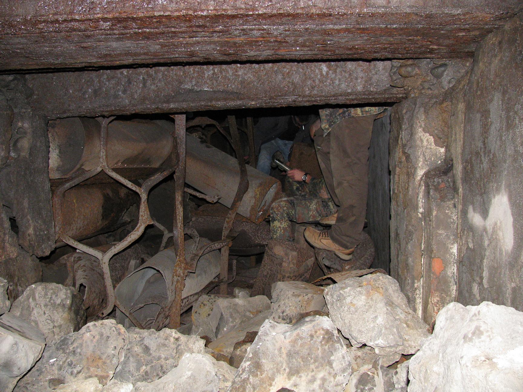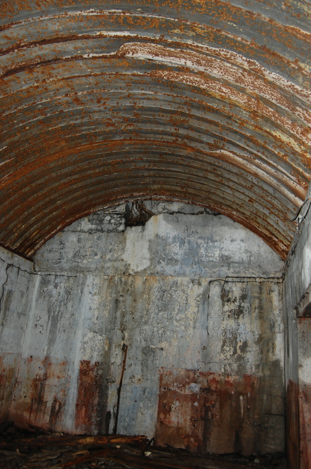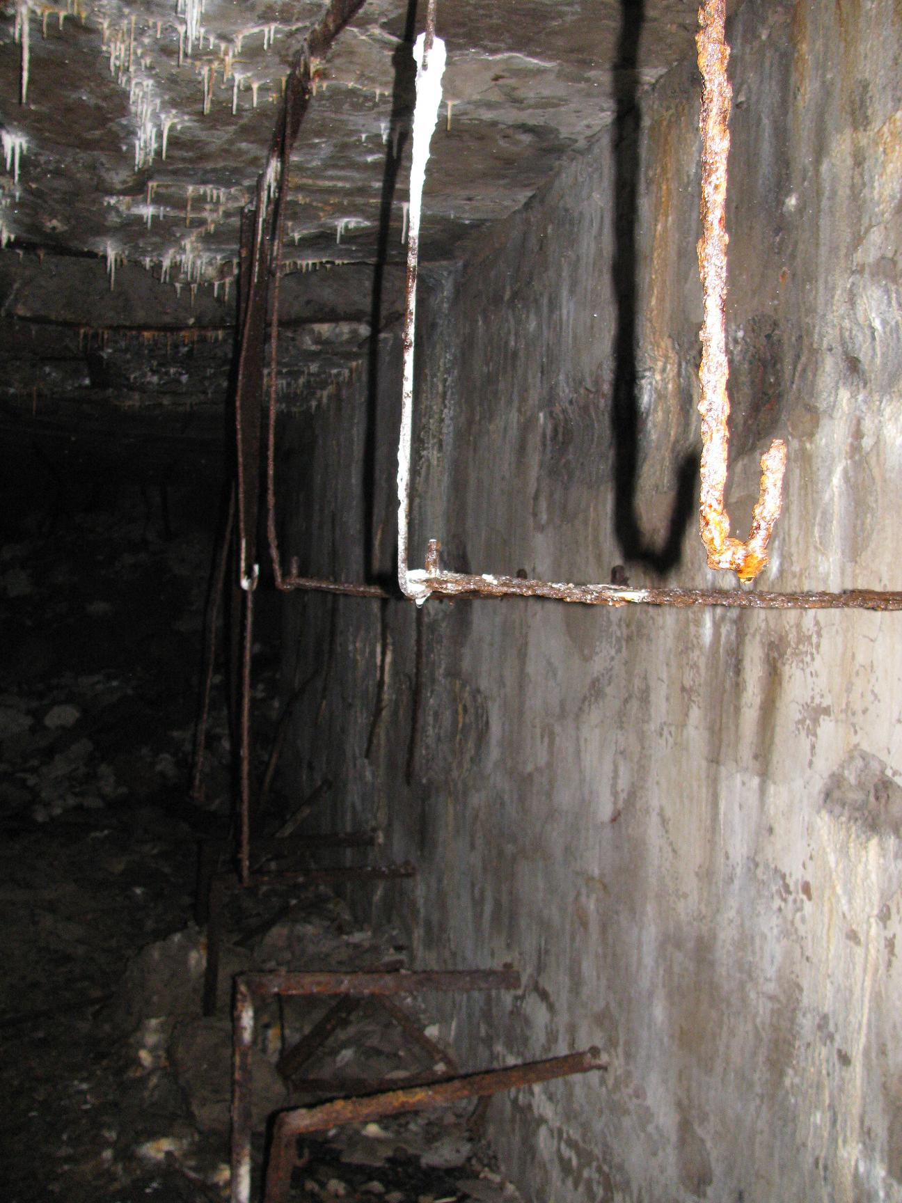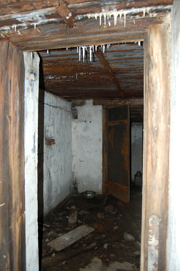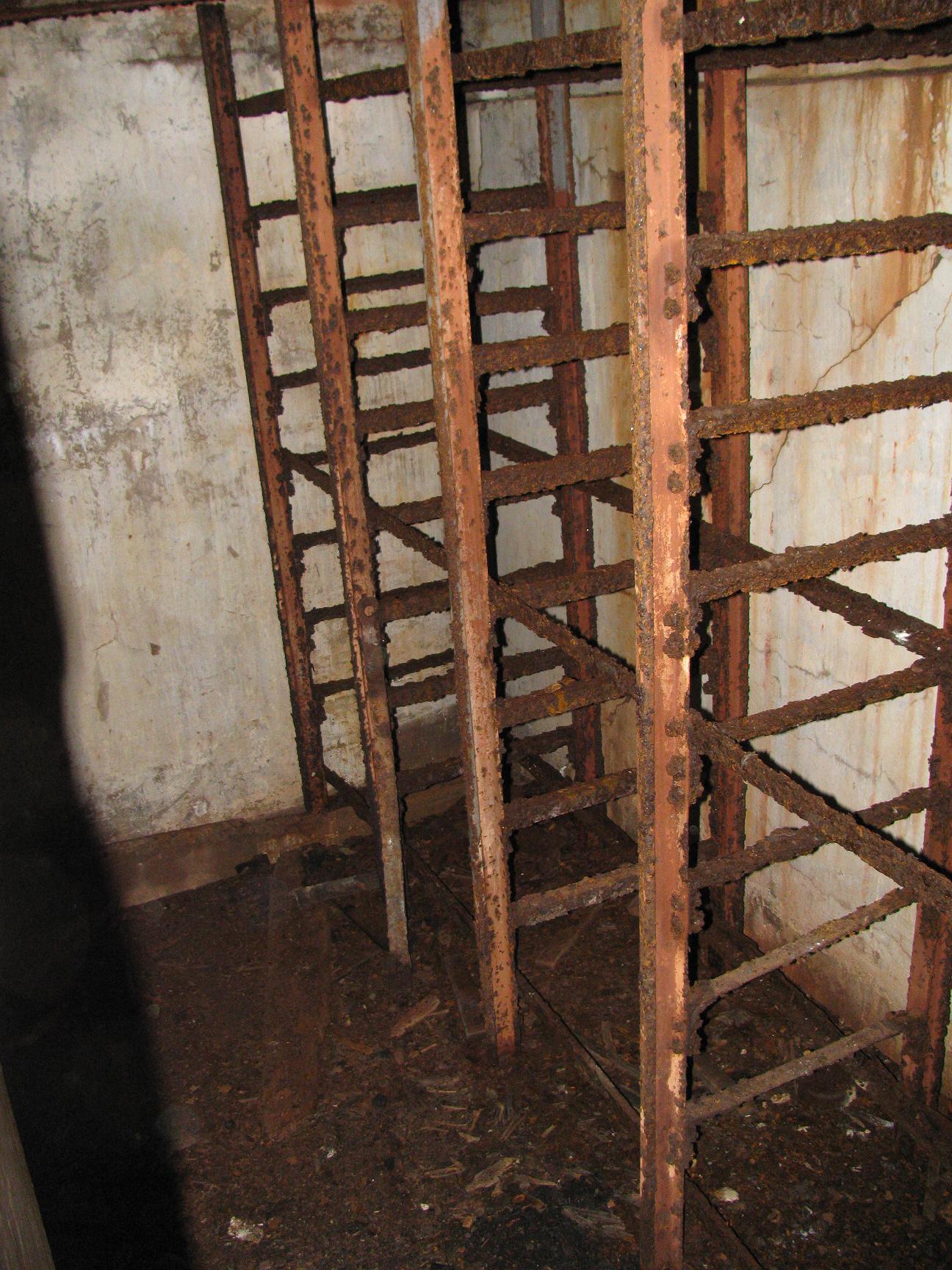 Kadunud on ülaääre reeling ja metalltrepp vasakust nurgast. Seintel on säilinud rohelised kamoflaažilaigud ja kiri: Keldriosas väike koridor ja kaks küllaltki väikest ruumi.