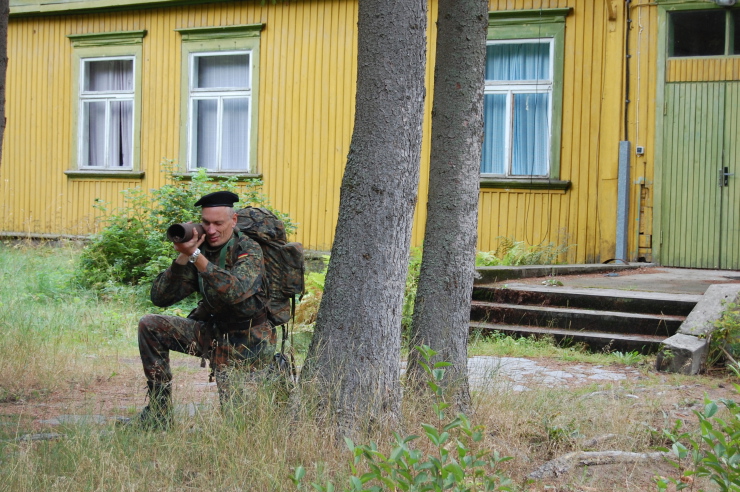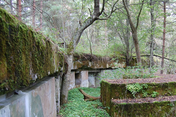 Taamal säilinud lainemurdja, muldkeha on osaliselt mere poolt minema uhutud. Järgmine militaarobjekt on (minu arust veel tsaariaegne) sõdurite kasarm, mis ümberehitatult oma põhivormi siiski säilitanud. Peale järgmist teekäänakut jõuame staabihoone ja ohvitseride kasiino juurde.