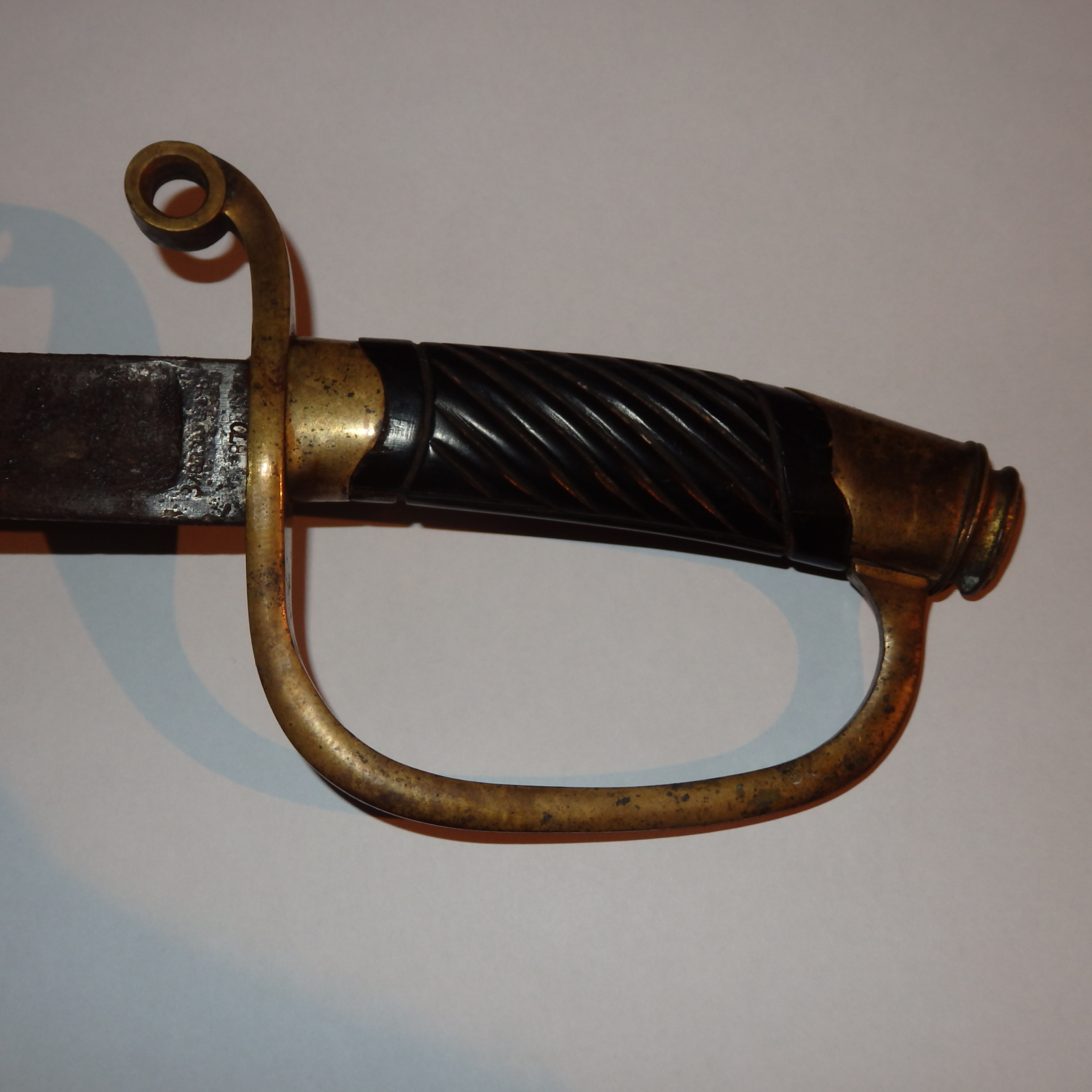 Käepide on justkui traguniohvitseri mudel 1881, aga käepide ise peaks olema puust, mitte eboniidist, kuid mine tea neid asju...