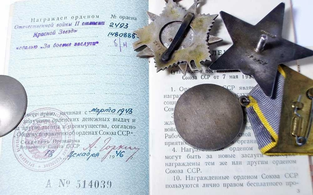 Punatäht 1 480 422, sõjaaegne "Gvardija", numbrita medal "Lahinguliste teenete eest" jne.