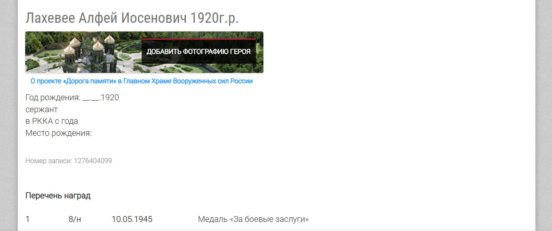 Seersant Alfei Lahevee medal Lahinguliste teenete eest (2046518) - kahjuks Podvig Naroda tema kohta mingeid dokumente üles ei ole laadinud. Sealt saab ainult teada, et medal on annetatud 10.05.1945.