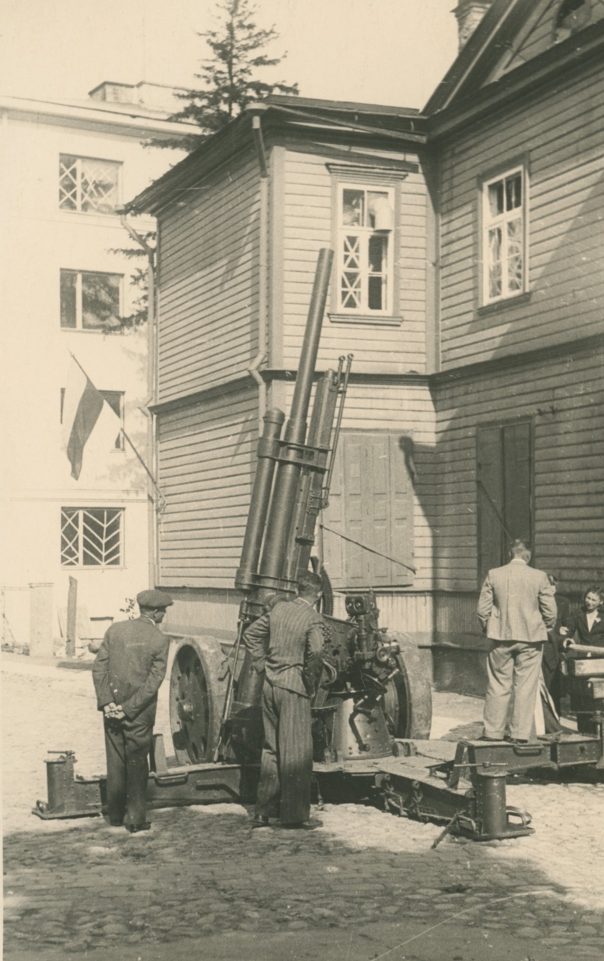 Voorimine oli ära lõppenud kui käis suur kärakas kohe meie juures, selle järele kohe teine. Siis arvasime, et nüüd nad taganesid ära ja teevad veel linnale, mis jõuavad. Varti lõi meie maja (35) tagant suur tulekuma ülesse. Kool ja Leo hiilisid värava juurde, heitsid kõhuli maha ja vahtisid, mis seal põleb. See põlev värk plaksus, raksus ja mütsus hirmsasti, sellepärast arvasime, et on laskemoon. Kool ja Leo tegid kindlaks, et põlev veoauto Mäesepa maja ees keset tänavat. Seal oli laskemoon sees. Venelastel oli see auto streikima hakanud ja nende kahe mürtsuga oli ta venelaste poolt nähtavasti süüdatud. Siis käis veel üks kärak ja auto bensiinipaak plahvatas, tule viskas välja aga vasakule poole – Mäesepa maja poole. See oli meie viimane hirm tule eest. Õnneks oli ta aga keset tänavat ja ei süüdanud ühtegi maja.