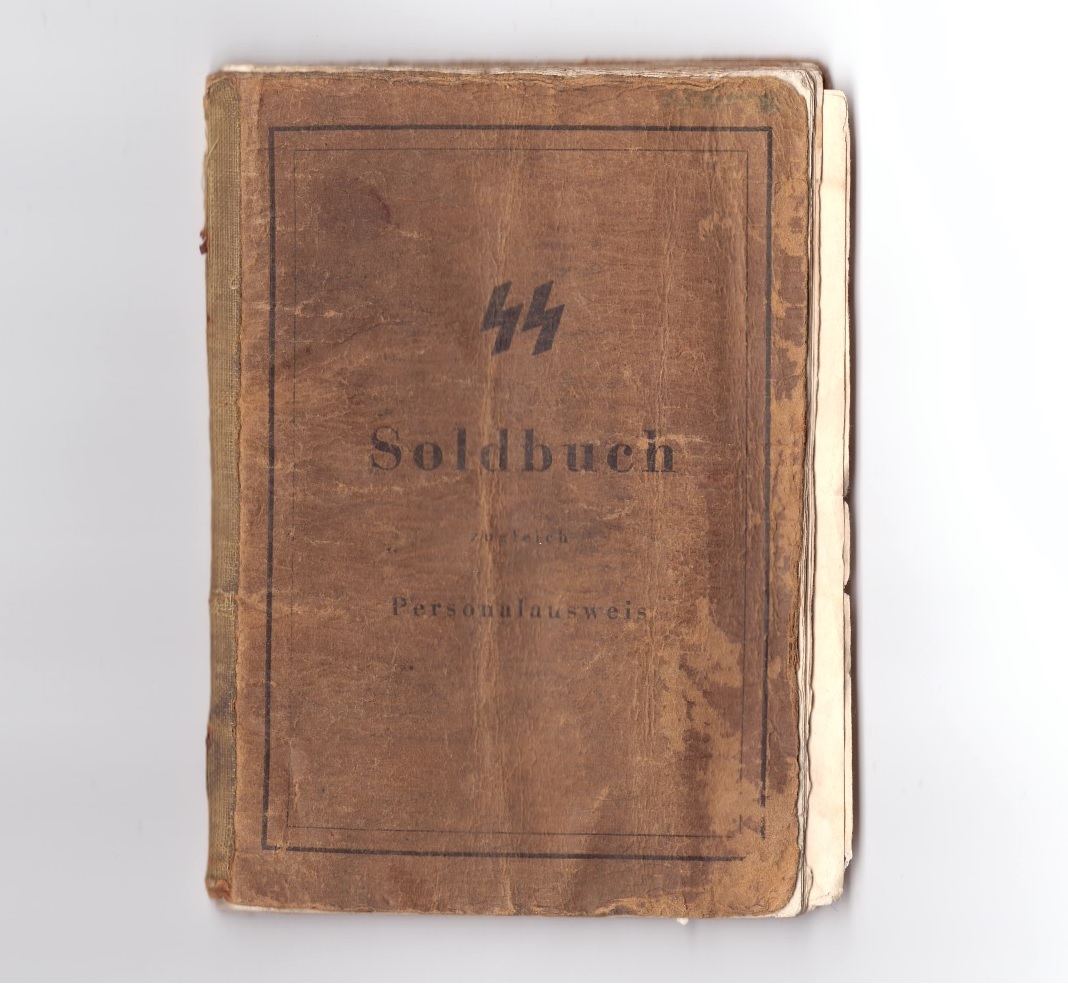 SS-Frw.Grenadier Verner Loos´ile kuulunud Soldbuch. Vähestest märgetest huvitavaim on sissekanne granaadi(mürsu) killust haavata saamise kohta.