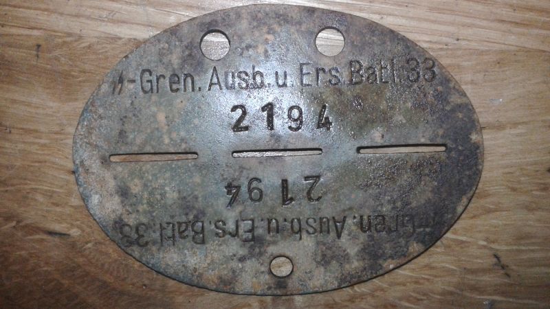 Kõik on nii nagu peab, millalgi 1944. aasta teisest poolest hakatigi neid SS-Gren.Ausb.u.Ers.Batl.33 kirjeid taguma õhukesest raudplekist zetoonidele. Lisan ka kaks eksemplari - mõlemal numbrid üle 11 tuhande ja zetoonid õhukesest raudplekist.