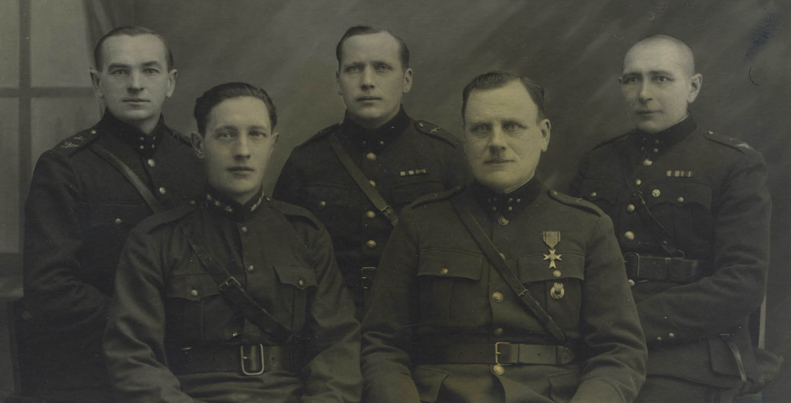 Suure-Jaani kompanii juhatus 17.02.1937 - esimeses reas Valter Tääker ja Hendrik Loigu, teises reas Tõnis Adamson, Theodor Kaasik ja Viktor Vint.