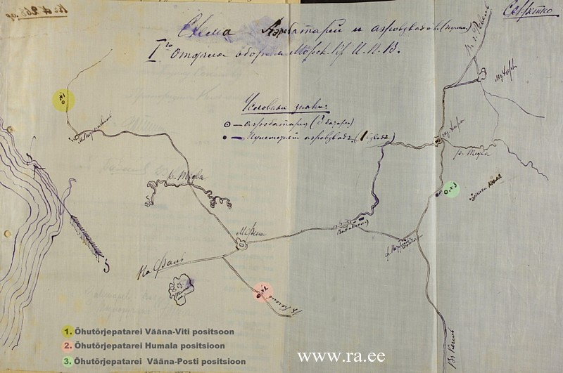 Juurde on lisatud käsitsi joonistatud kaart - skeem patareide paiknemisest.