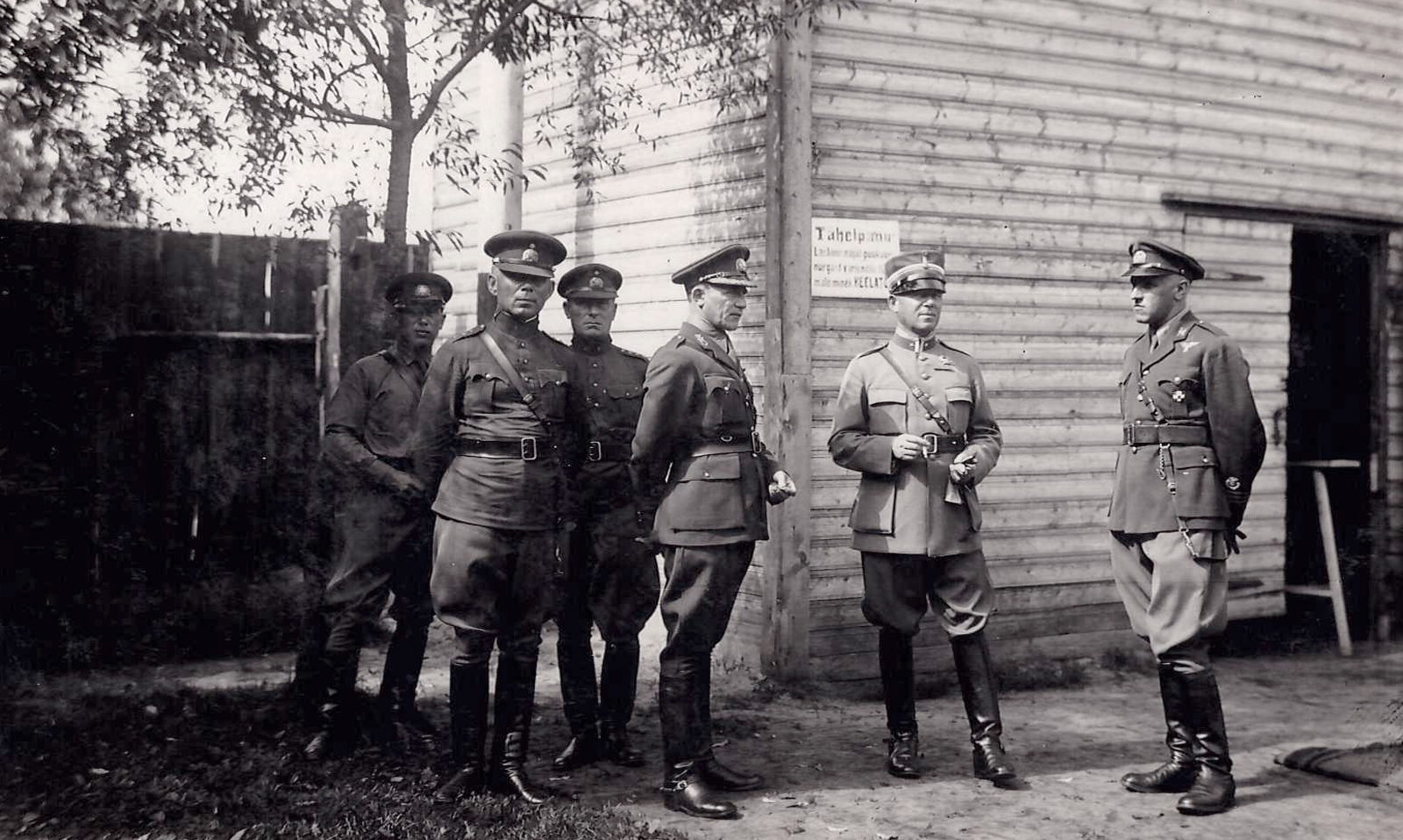 A major in the centre together with the policemen, railway officials, Defence League members