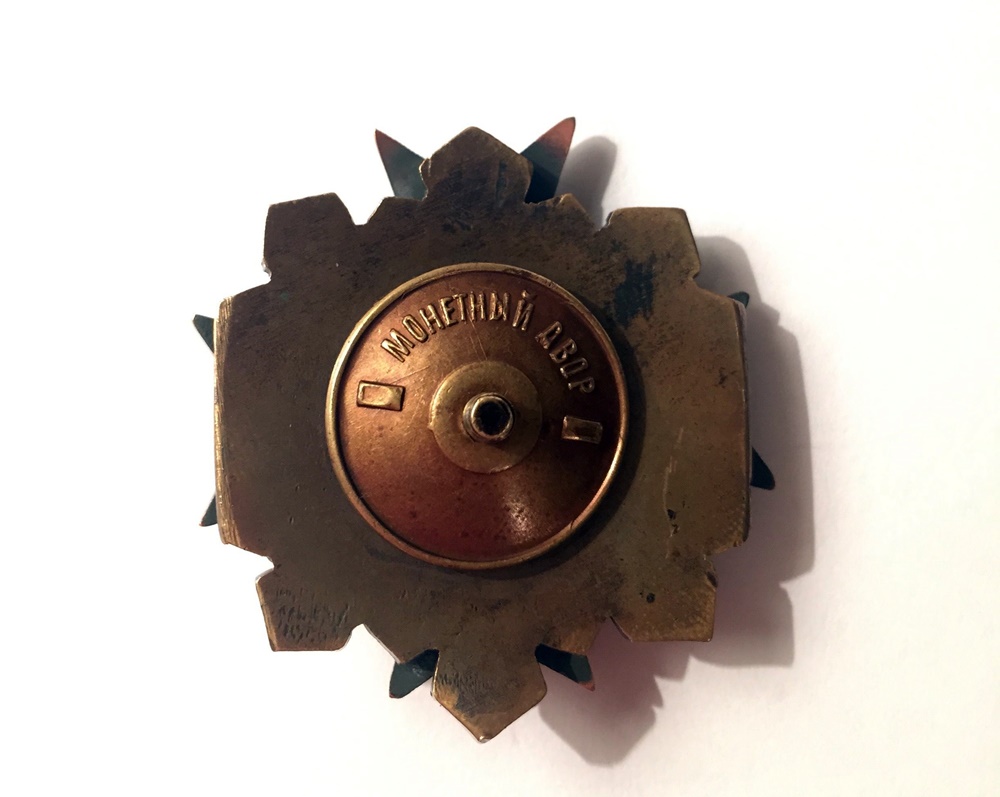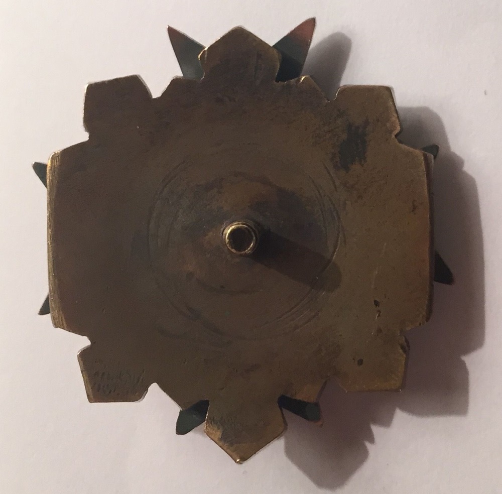 Pigem on see mingi fantaasia. Emaileeritud rist koos ristatud relvadega oleks nagu EW sõjakooli märgi detail. Võib olla on leitud see ja siis kombineeritud tänapäevaste vidinatega mingi käkk kokku.