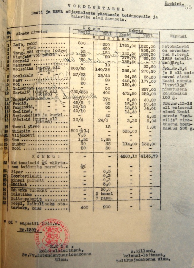 0,365 kilo per nägu kuid ilmselt komandörid ja politrukid törts rohkem ja reakoosseis pisut vähem.