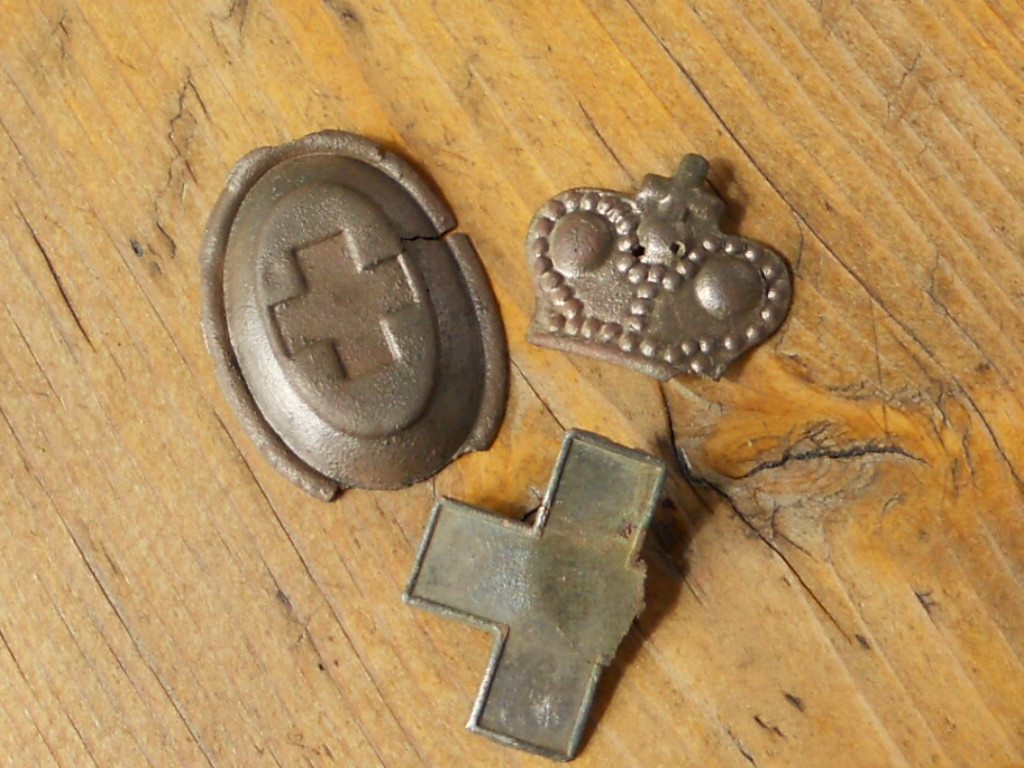 Ovaalne on tsaariarmee med. teenistuse alamväelase mütsikokard, rist sama teenistuse pagunimärk.
