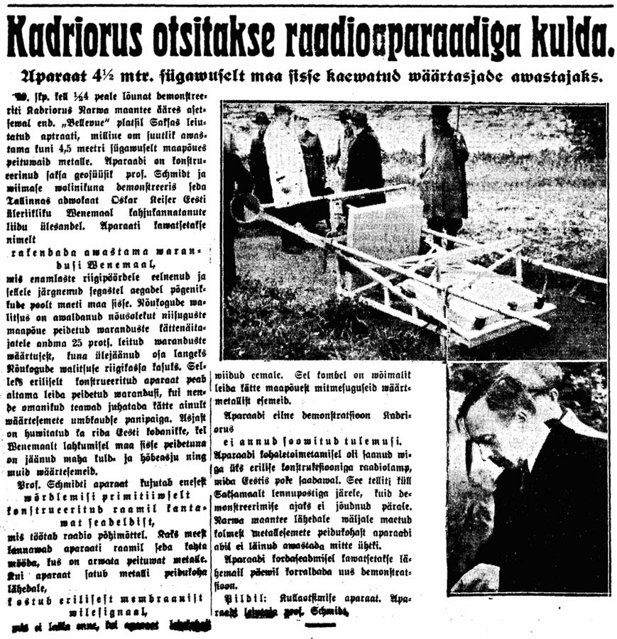 Sügisel "täielikult äpardunud" Kadrioru kullapalavikust, Maa Hääl 22.09.1935 lk 3 (küllap kirjutati ka teistes lehtedes):