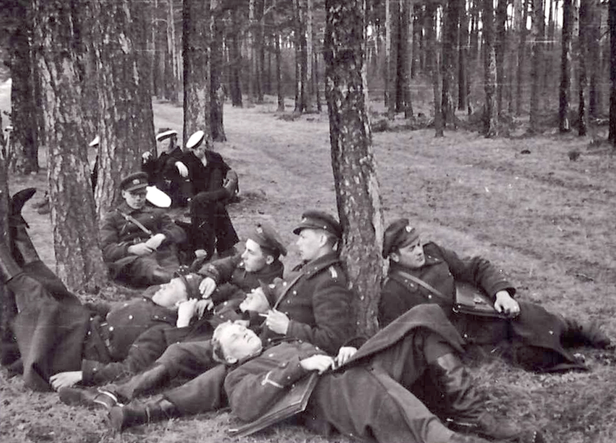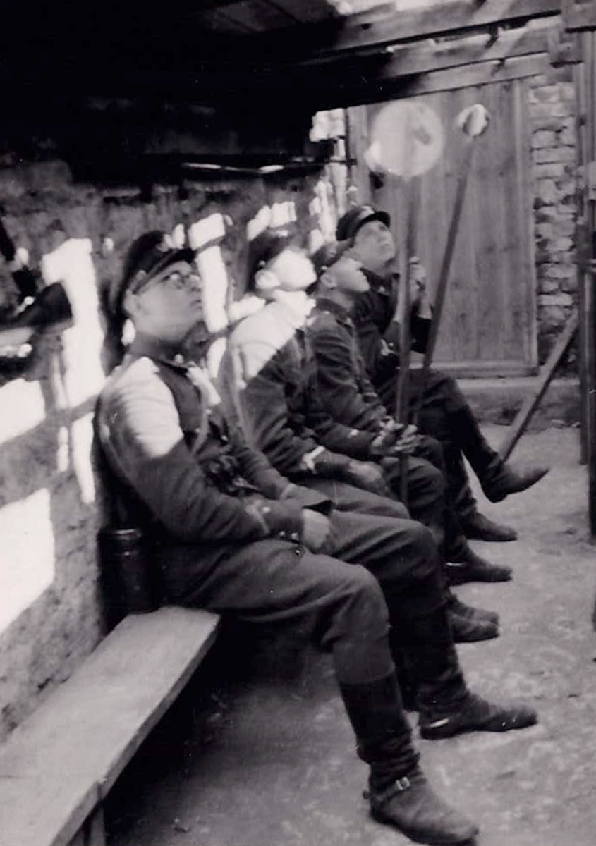 sama seeria, Süjakooliaeg Tondil. Sõbrad enne ärasõitu Jägala poligonilt aprill 1940.jpg