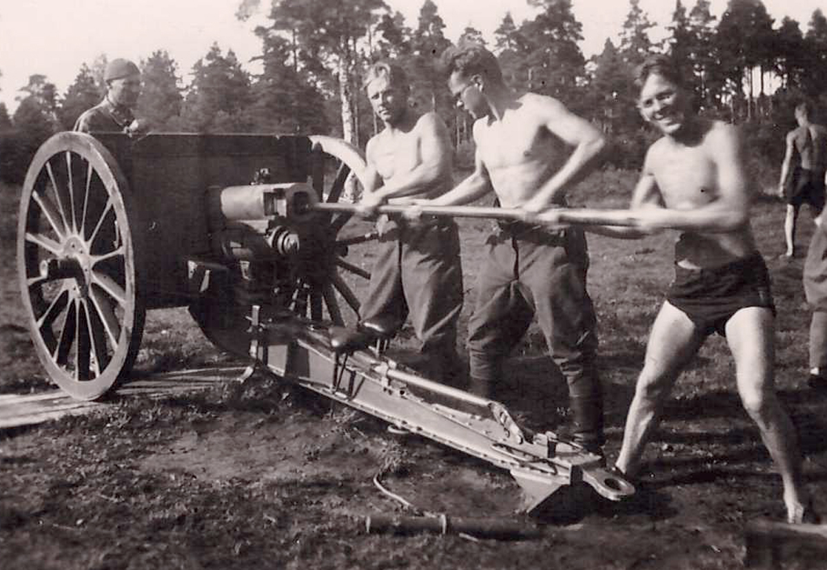 sama seeria Sõjakooli aeg, Jägala laagris suurtükke nühkimas juuli 1940.jpg