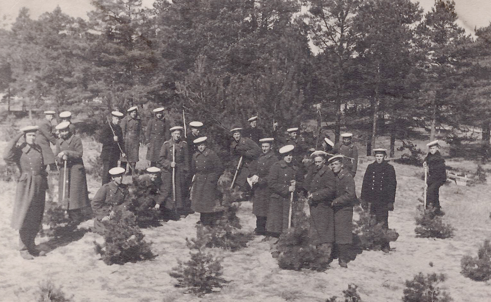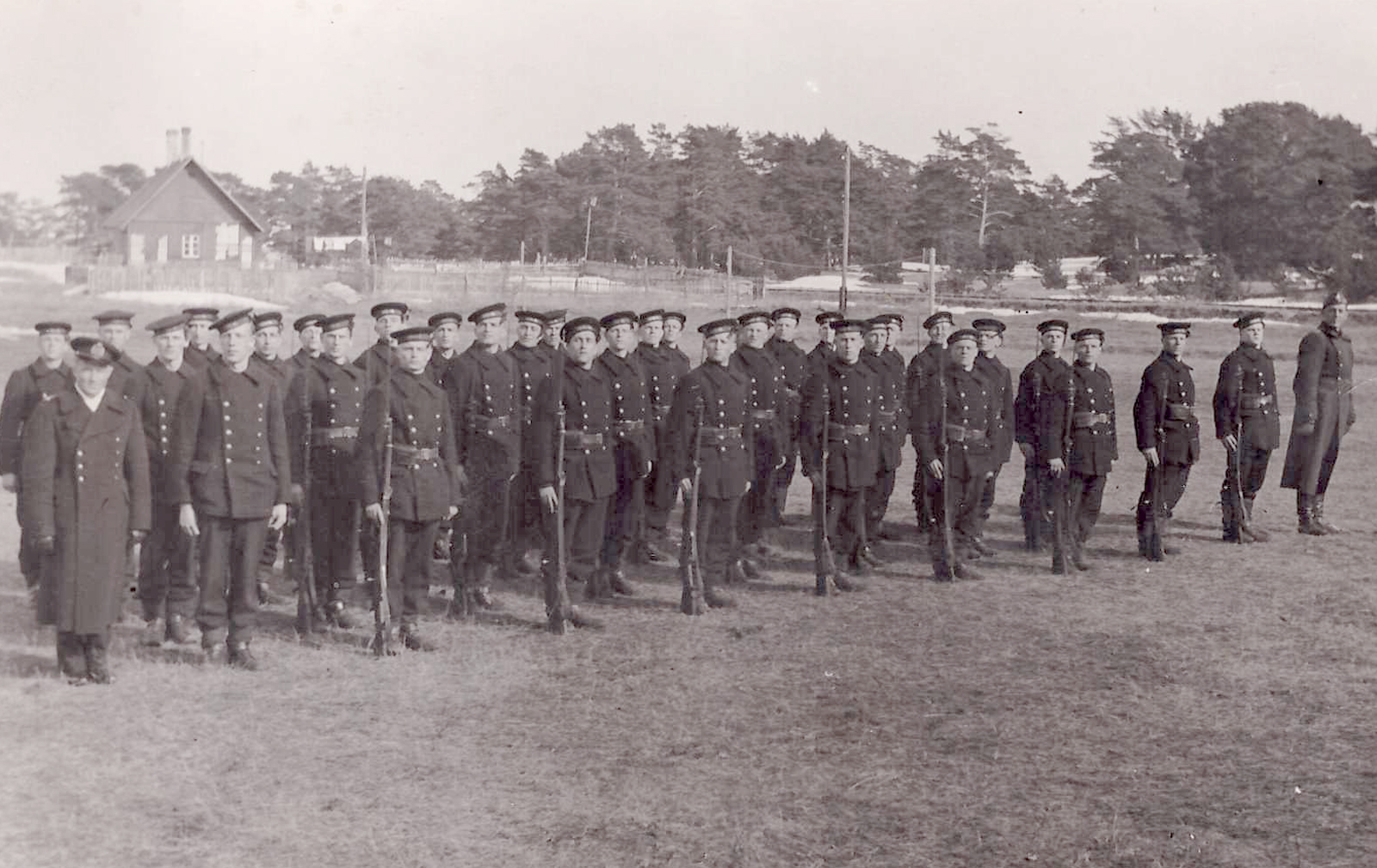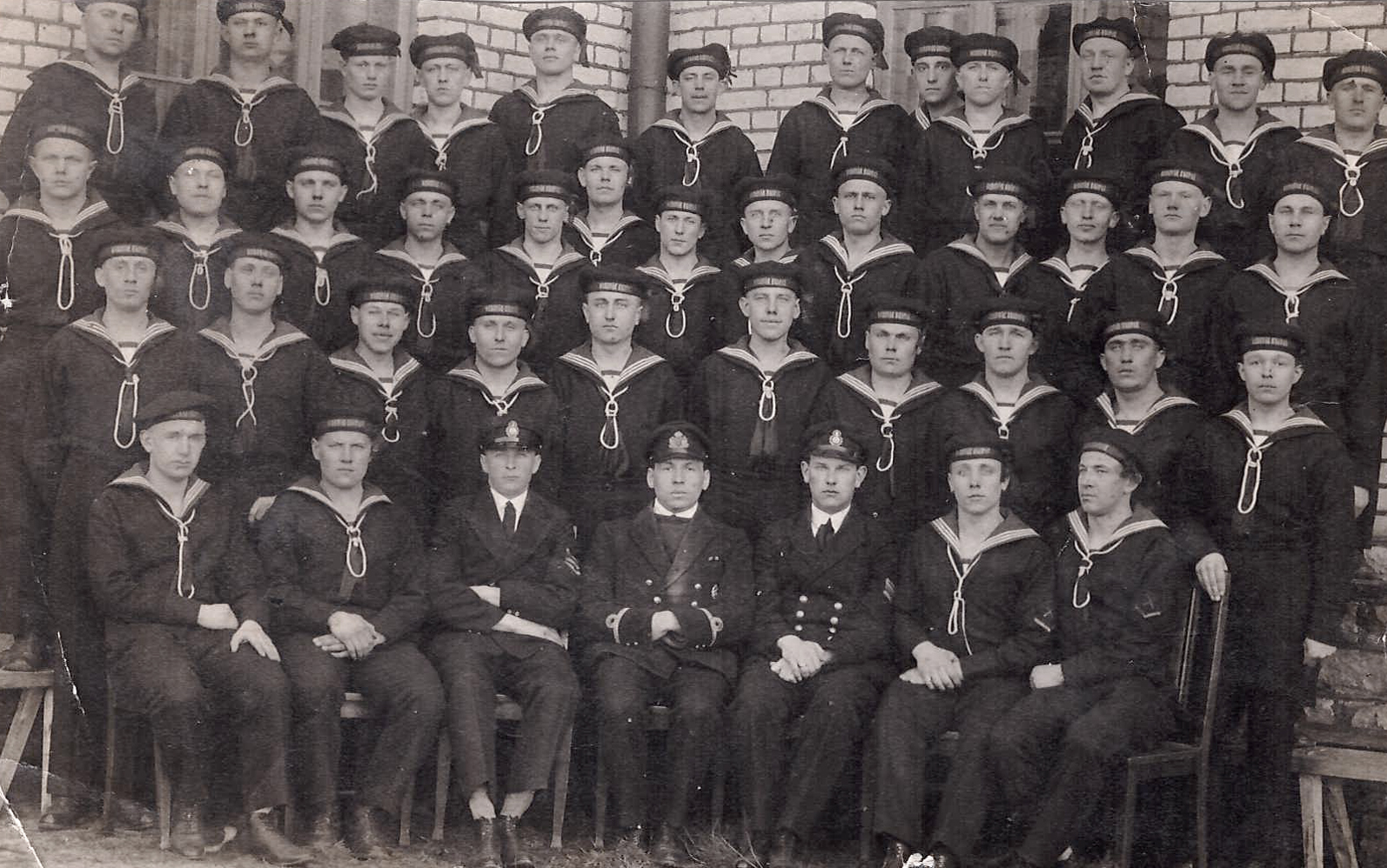 EW mereväelaste rivistus.jpg - Aegna MK, riviõppus 1938. aastal - pole 100% kindel aga esimese rea vasakult esimene võiks olla Vassili Männi, natuke häirib see ohvitseri mütsimärk tema mütsi eest, sest V. Männi oli veltveebel.