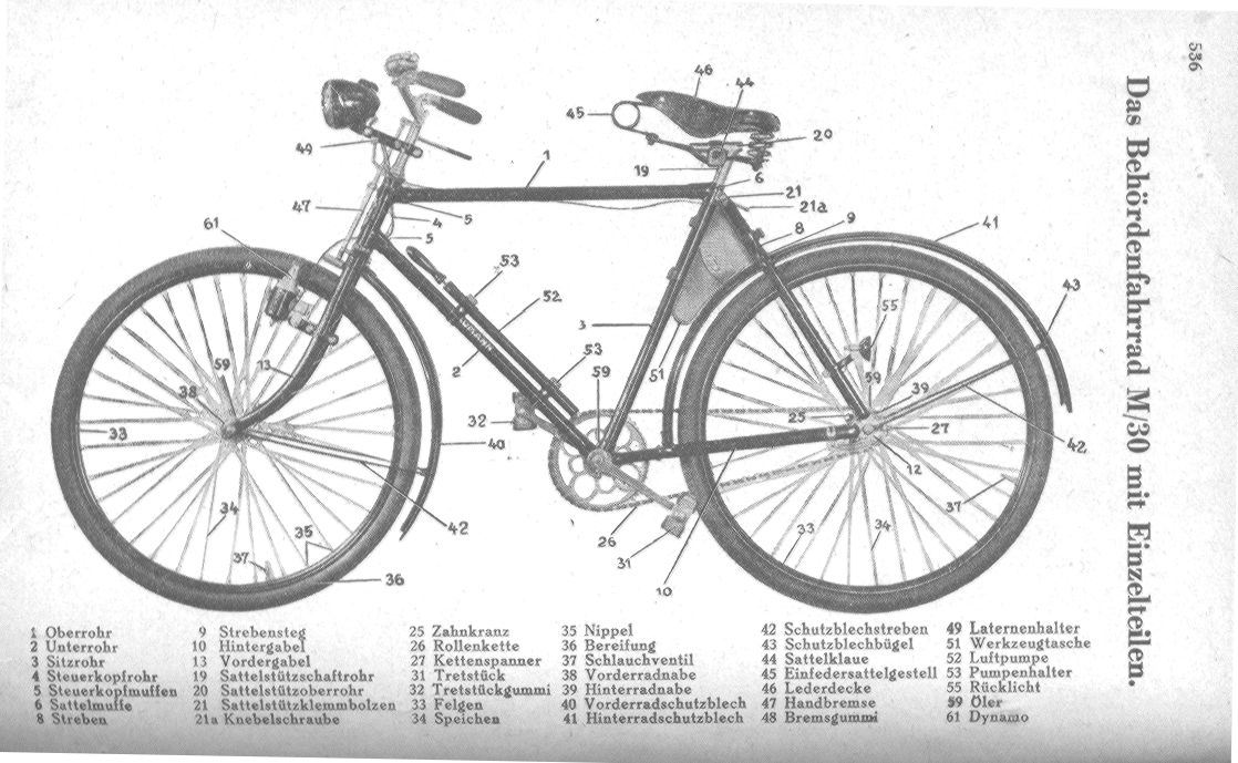 Laias laastus on kõik selle aja saksa tootjate põhimudelid sarnased, rohkem ja vähem. Kõigepealt tuleks selgeks teha, mis loomad need das Behördenfahrrad M/30 olid, tundub, et ega nad eriti tavamudelitest ei erinenud, raamatu pildil on kajastatud Seidel & Naumanni mitte millegi erilisega silmapaistvat meesterahva jalgratast, no tööriistakott on paigutatud kohta, kus ta üldiselt meesteratta tavamudelitel ei käinud, kuid on ka teda sinna paigutatud "tavamudelitel". Neid mitmesuguseid prostama viimistlusega ja tugevamaid/robustsemaid "töömehe jalgrattaid", Dienstrade/teenistusjalgrattaid jms on 30-ndate saksa tootjate kataloogides ikka näha olnud.