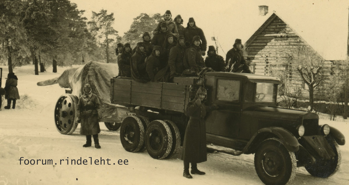 Teine pilt tehtud samuti 1940/41 talvel, veoauto taga on slepis üks nendest 76mm kahuritest ja kahuri taga paistab veel teinegi auto. Kui ma ei eksi siis kasutajal LoCo peaks olema foto sellest tagumisest autost. Selle üksiku maja järgi on kohta vist võimatu kindlaks teha?