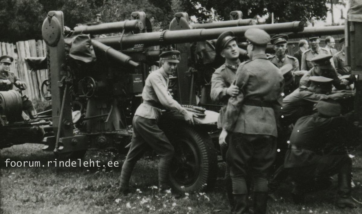Siin on näha lähedalt ühte nendest kahuritest, mingile karbile on selges eesti keeles peale kirjutatud "Optiline õhumärgi sihik". Pildistatud samal ajal, mis eelminegi - vahemikus mai lõpp kuni augusti lõpp 1940.