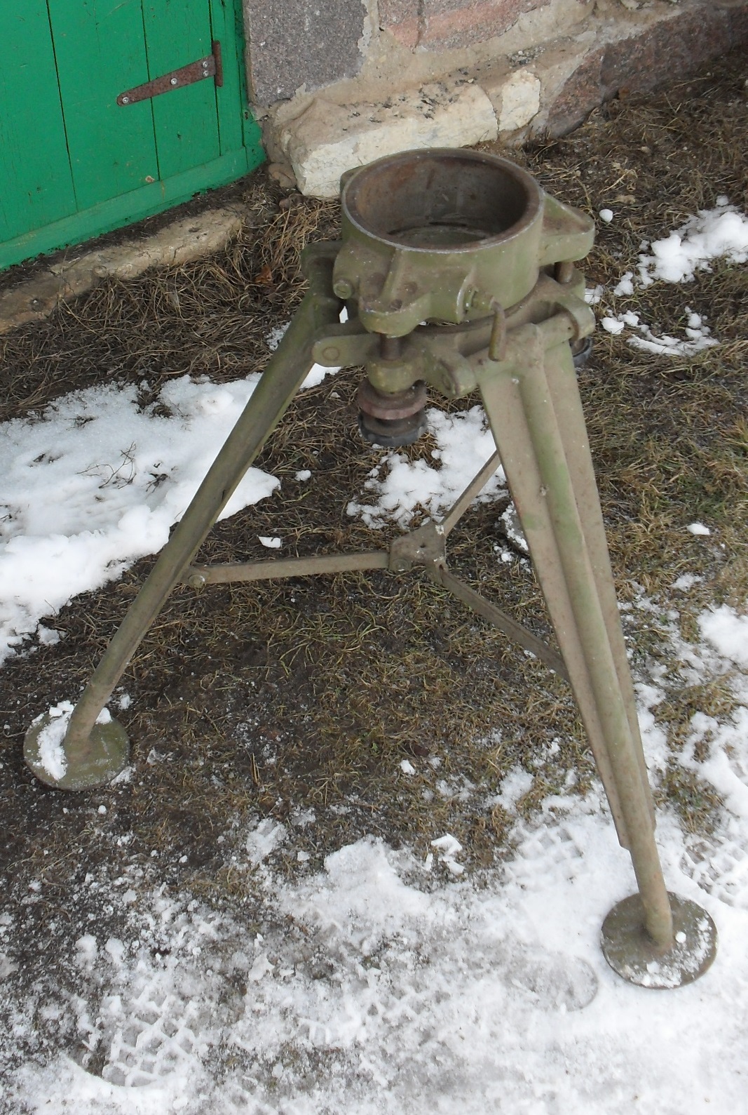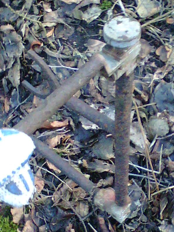 Lisaks veel kolm eset, mida täpselt tuvastada ei suuda. Esiteks kolmjalg- peale käib talle mingi looditav asi (kolmest punktist on kõrgus reguleeritav) ning kuna pesa on rauast ning määrdega koos, siis eeldaks, et see on midagi, mida saab vasakule-paremale liigutada. Värvikihte on peal 2, alumine on nõukogudelik roheline, ainus tähis peal on "D67", millest "D" näikse justkui ladinatäht. Kõrgust maast on vast meetri jagu ja massi kah omajagu, jalgade otsas on maapinda fikseerimiseks nagad.