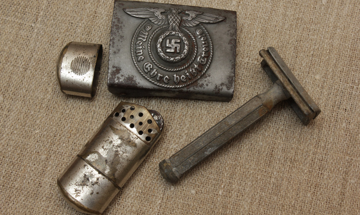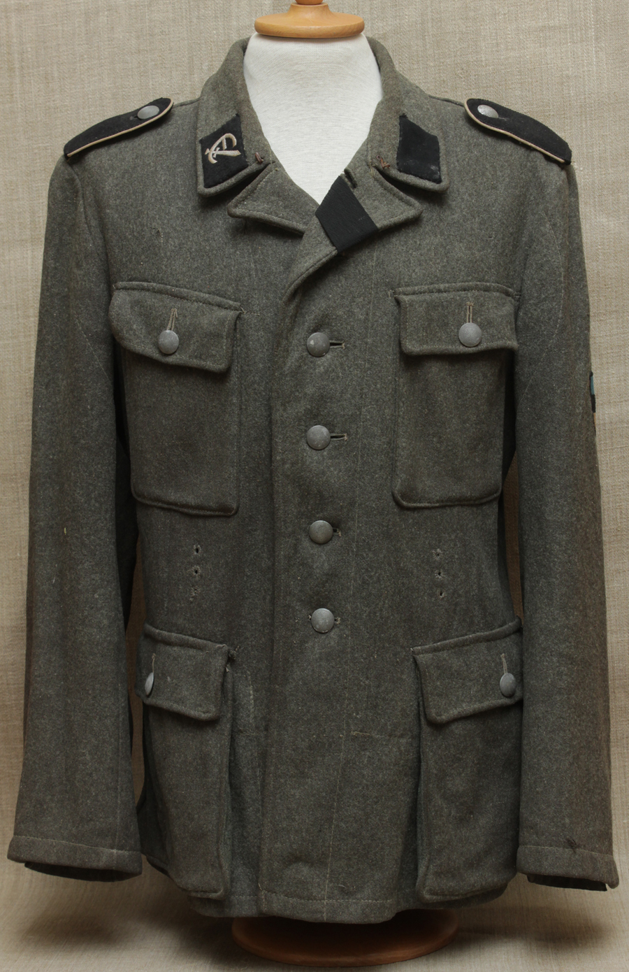 Minu eelmise nädala leid - leegionär Leo Saare vormikomplekt! Kõik embleemid on vormikuuele õmmeldud sõja ajal, Leo on langenud venna mälestuseks õmmelnud krae reväärile musta lindi. Vasakul varrukal on Dachau kilp, kotkast ei ole varrukal olnud. Pilotka ees on kolp ja kotka asemele pandud raudplekist sini-must-valge kokard, küljel metallist lõvi. Pükste ja vormikuue taskutest tulid välja vöörihma pannal (155/43), välgumihkel, raseerija, poolik pakk mängukaarte ja paberraha. Vorm leiti eelmisel aastal Leo vanemate kodumaja pööningult, kuhu ta jättis selle ilmselt maha 1944. aasta augusti alguses kui ta sai 5-päevase puhkuse.