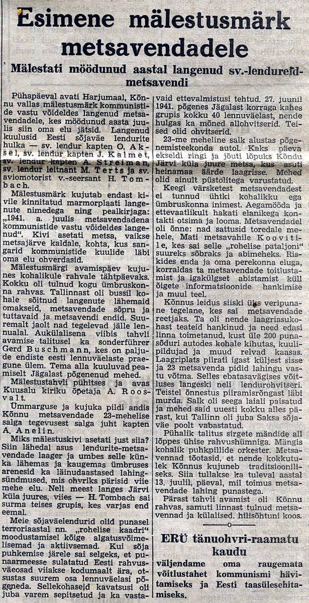 Esimene mälestusmärk metsavendadele