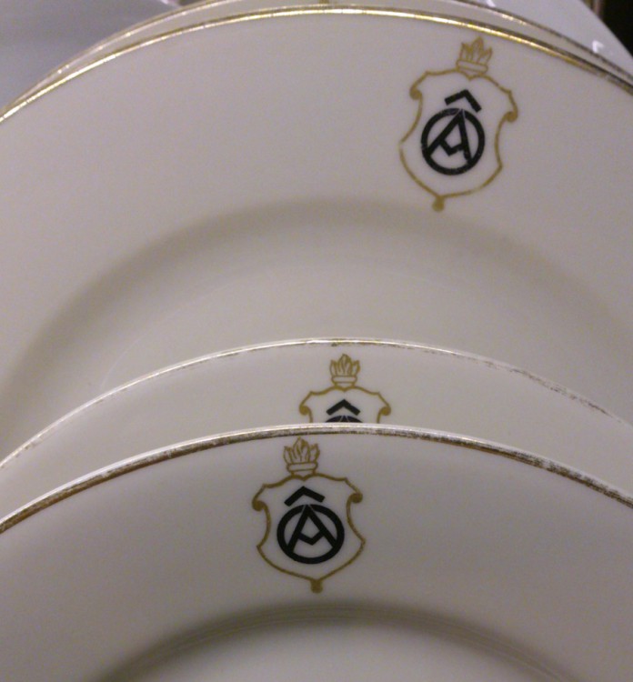 Sõjaväe Õppeasutuste sümboolikaga nõud Tallinna Linnamuuseumi kogudest.