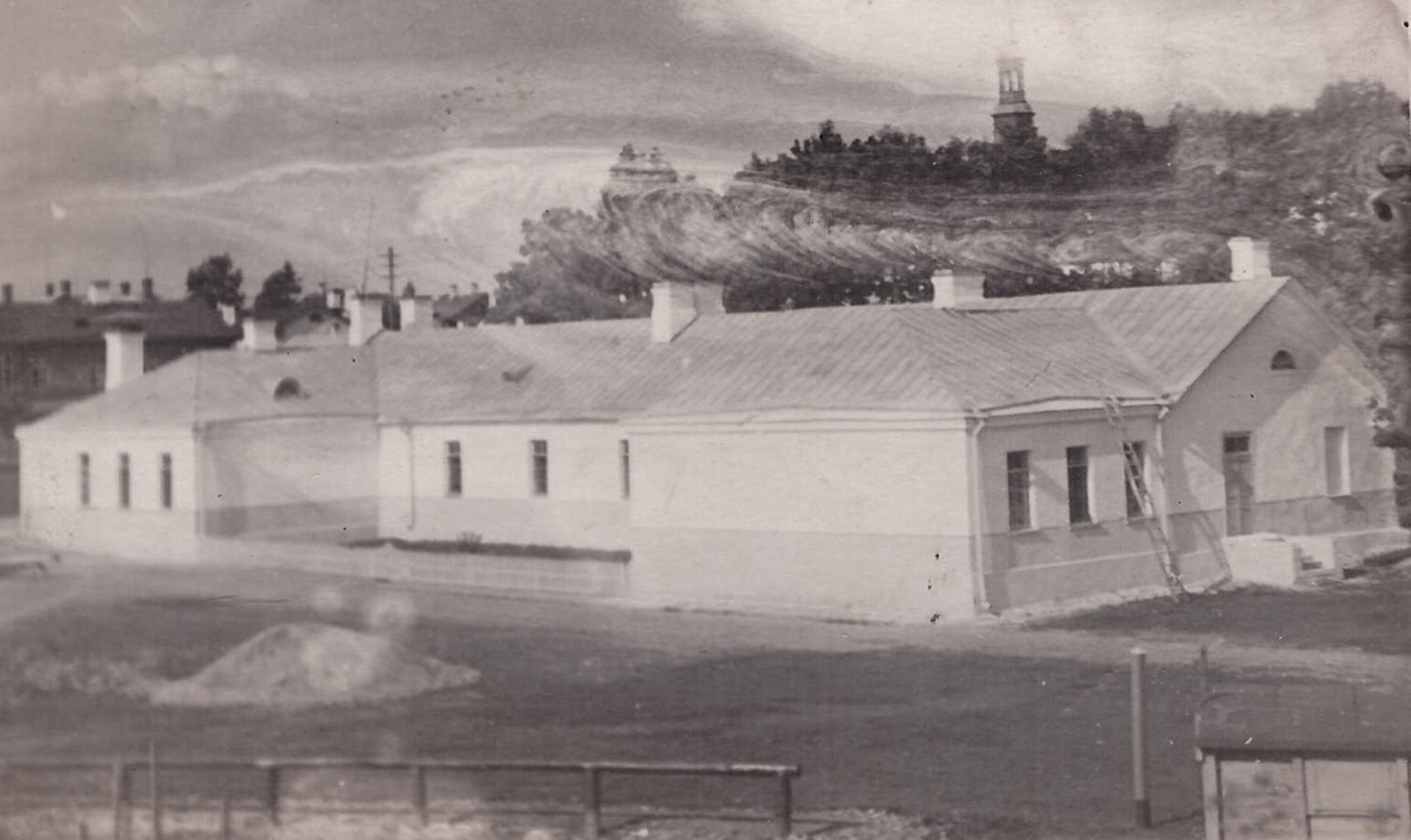 Selline foto, kus pikk hoone peaks mingi kasarmu olema,taga kiri : Paul Lassel, kolmas patarei.