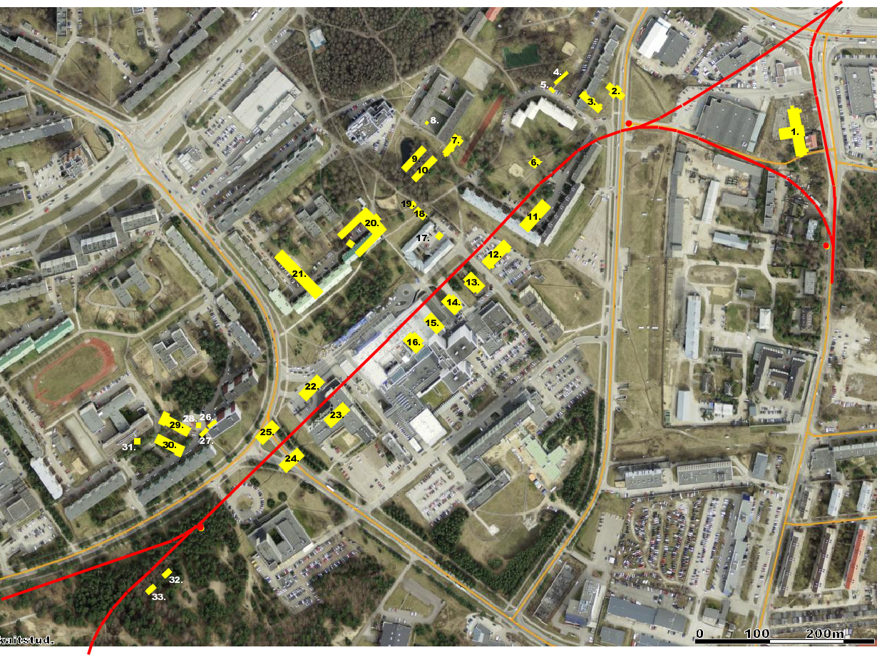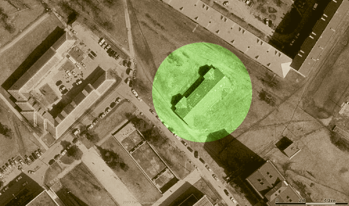 Tänapäevase aerofoto peale kandsin PSMK ajal ehitatud ja Eesti Sõjaministeeriumi poolt üle võetud ehitised ja rajatised 1920. aasta seisuga. 1. kasarm