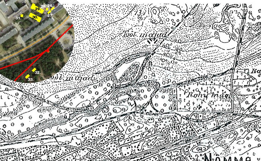 Milnetis äratoodud kahekümnendate aastate kaardil märgitud tööliste majad on SM kaardil hooned 26 kuni 31.