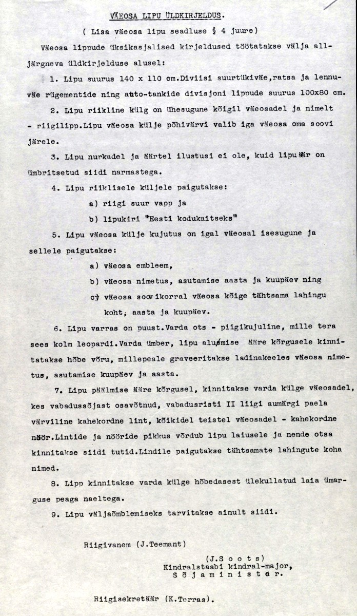 Väeosa lipu seadus, mis maksis kuni 1940. aastani.