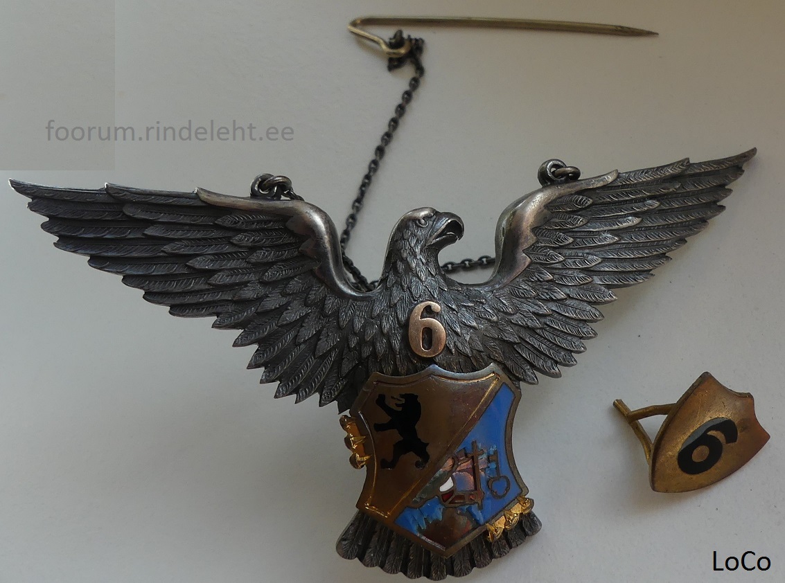 6. üksiku jalaväepataljoni rinnamärk ja m36 üleajateenija kraemärk, kuulunud nooremallohvitser Viktor Muurile, s. 25.08.1905.