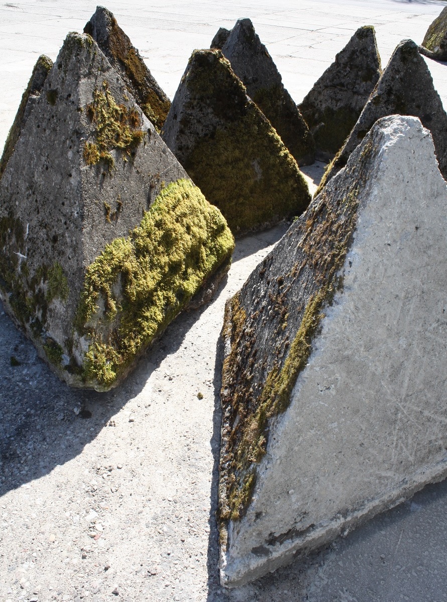 Ma võin eksida, aga kas need "hambad" selle monumendi tarvis valatud pole? Kilulinna kaitseliini jäänuseid vedeleb igal pool, suisa kesklinnastki võib neid saatanlikke püramiide leida. Ühest padrikust avastasin paar suve tagasi neid terve hunniku (sõjajärgse kivikoristuse käigus üks põld neist vabastatud) ja nägin esmakordselt, et neil on maa-alune osa mahult enam-vähem samasugune kui maapeal nähtav.