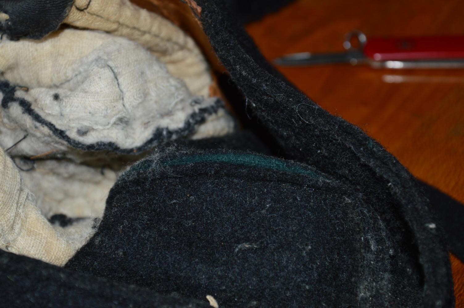 Mustaks hiljem värvitud ka müts ei ole, muidu oleks sama värvi ka kant (samuti villane riie)ja papist sisekonstruktsioon on algupärane.