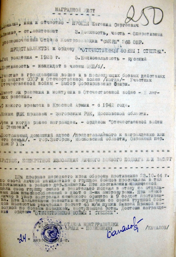 8. Armee 268. üksiku trahviroodu vastuluure osakonna SMERSH vanemleitnant Pronin