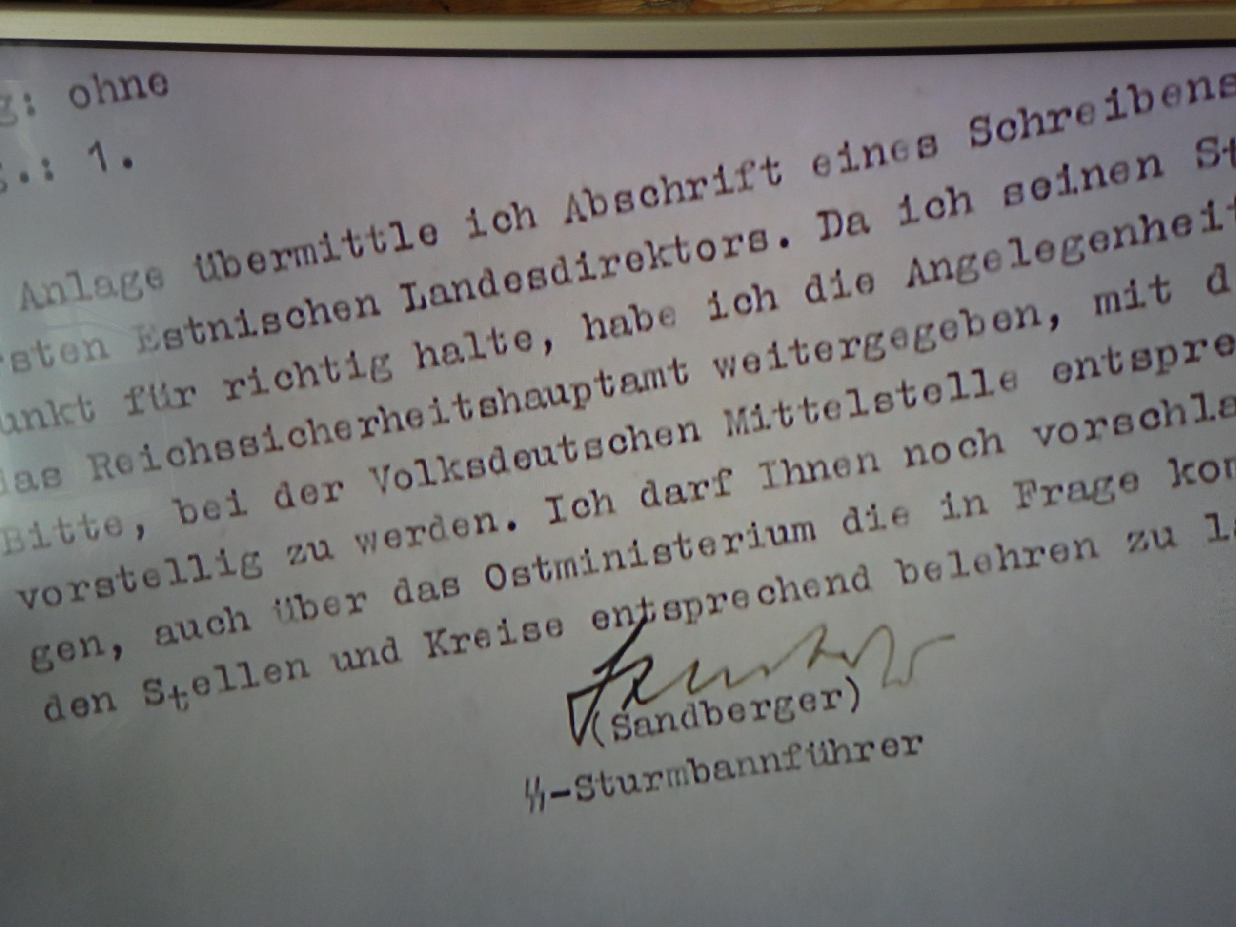 See on originaaliks kinnitatud ühe soome kollektionääri poolt ( käis suvel Eestis ringi relvanäitusega ) . Aastake tagasi oli mul Mein Kampf ,kus oli samuti originaalne allkiri ja pühendus ilmselt polnud Sandbergeri oma . Kui seda sai tuvastatud siis Saaremaa muuseum ajas mulle välja Eesti Rahvusarhiivist samuti 2 allkirja aga pole säilitanud neid.