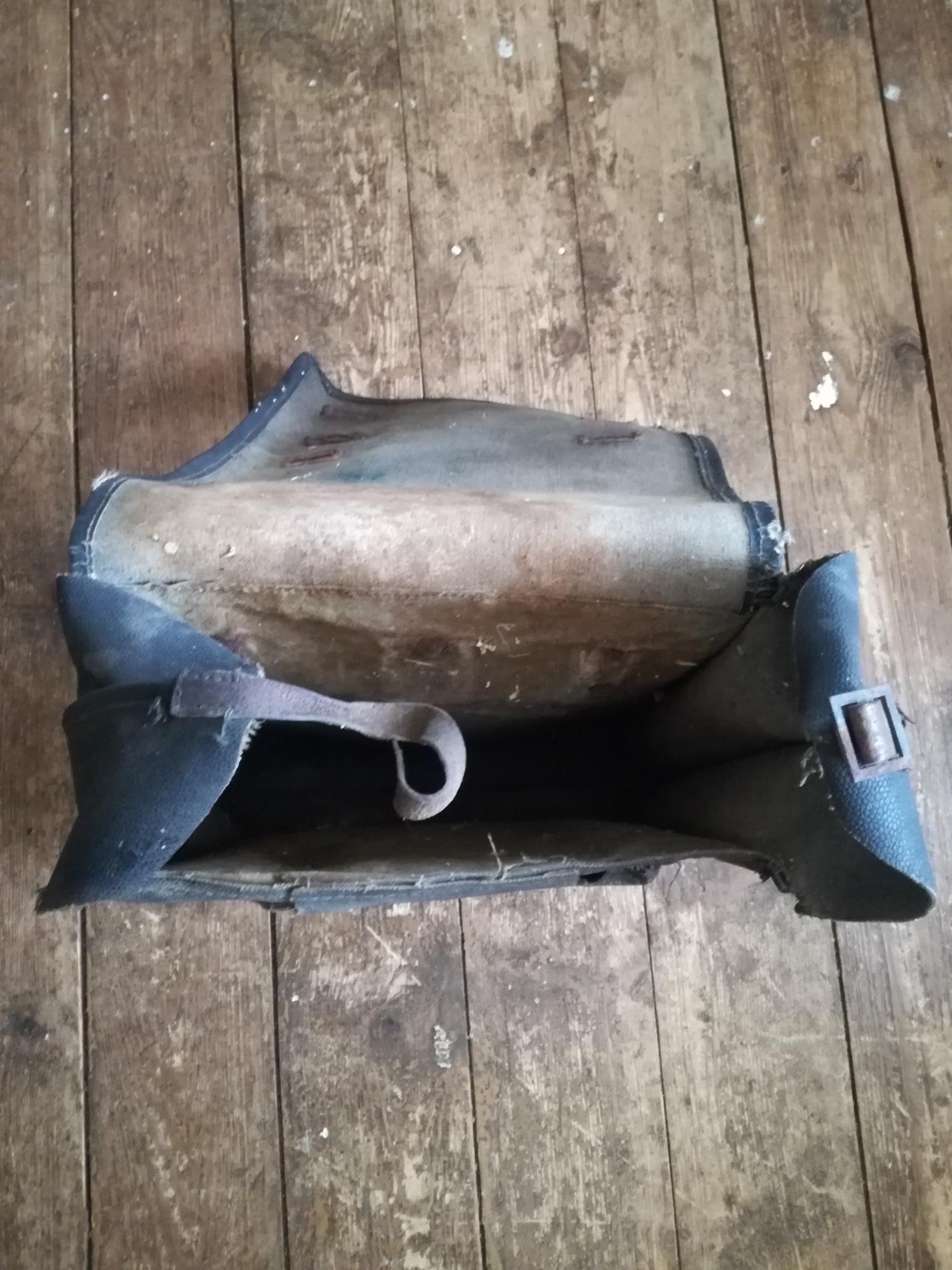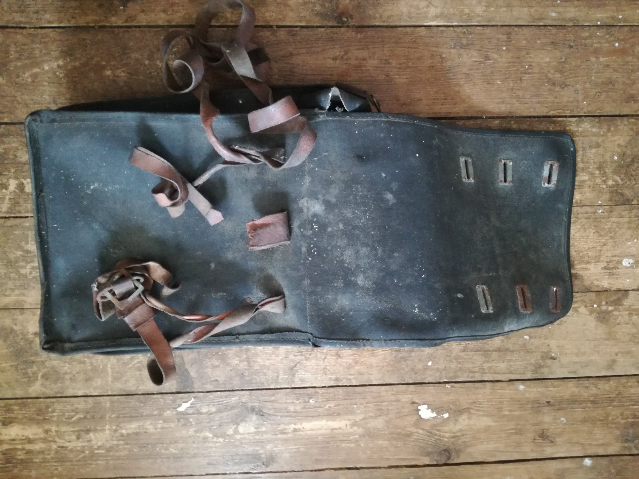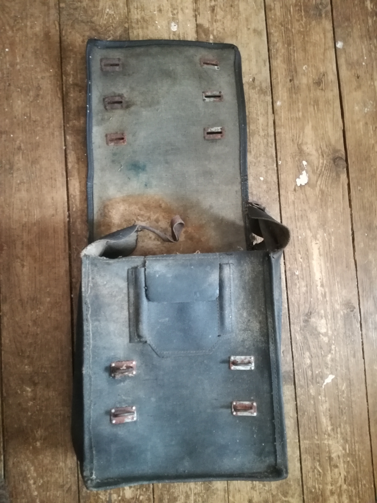 Leidsin 2 kirsanahast välitasku moodi kotti, kas keegi oskab öelda millega täpsemalt tegu. Väiksem on mõõtudega 20x25cm, suurem 30x40cm, lisaks on suuremal kotil mingi imelik rihmamajandus küljes, tundub justkui tehasetöö olema.
