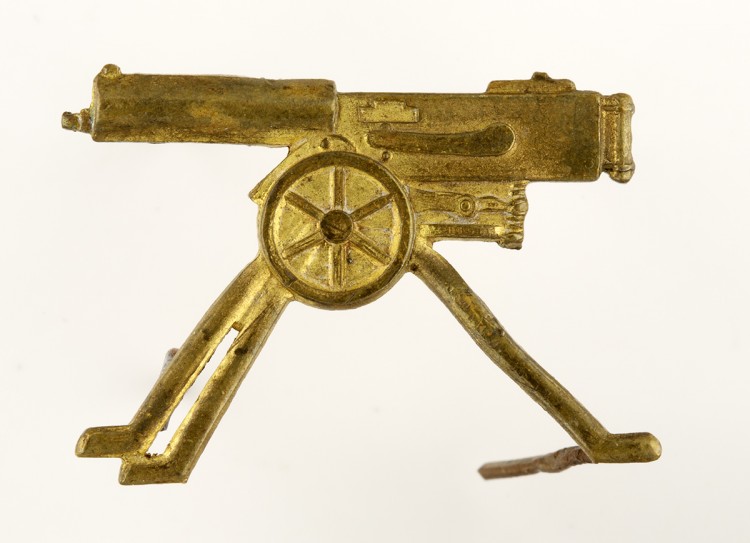 Pole päris 100% kindel aga tõenäoliselt on tegemist Kaitseliidu Sakala maleva Raskekuulipilduja kompanii rinnamärgiga. Mõõtudega 45 x 43 mm märk on valmistatud 1940. aastal Roman Tavasti töökojas. Ilmunud raamatutes sellise märgi kohta informatsioon puudub ja ilmselt ei ole vihjeid ka Rahvusarhiivis, sest sellisel juhul oleks mingi teave jõudnud ka raamatutesse. On olemas foto, kus KL Sakala maleva Raskekuulipilduja kompanii pealikul Mihkel Truusööt'il on sama märk rinnas. Konkreetne märk kuulus Mihkel Esman'ile. Mõlemad mehed, Truusööt ja Esman olid Viljandi Eesti Põllumeeste Seltsi Kaubanduse Osakonna liikmed - Truusööt ärijuht ja Esman ärijuhi abi.