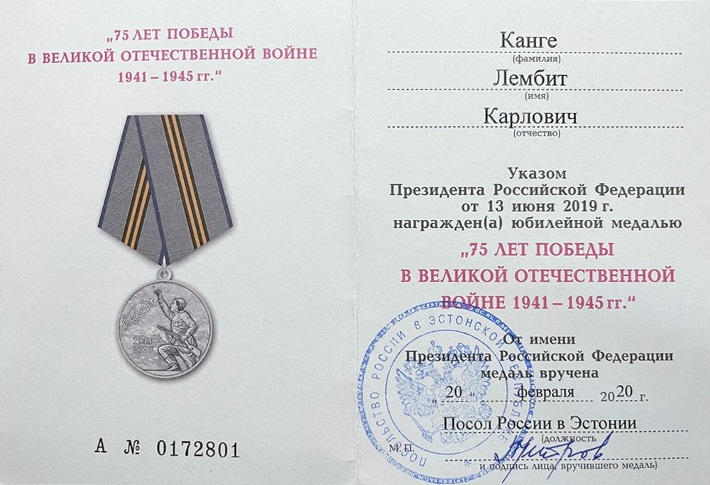 Re: Juubelimedal ''75 aastat võidust Suures Isamaasõjas 1941-1945''
