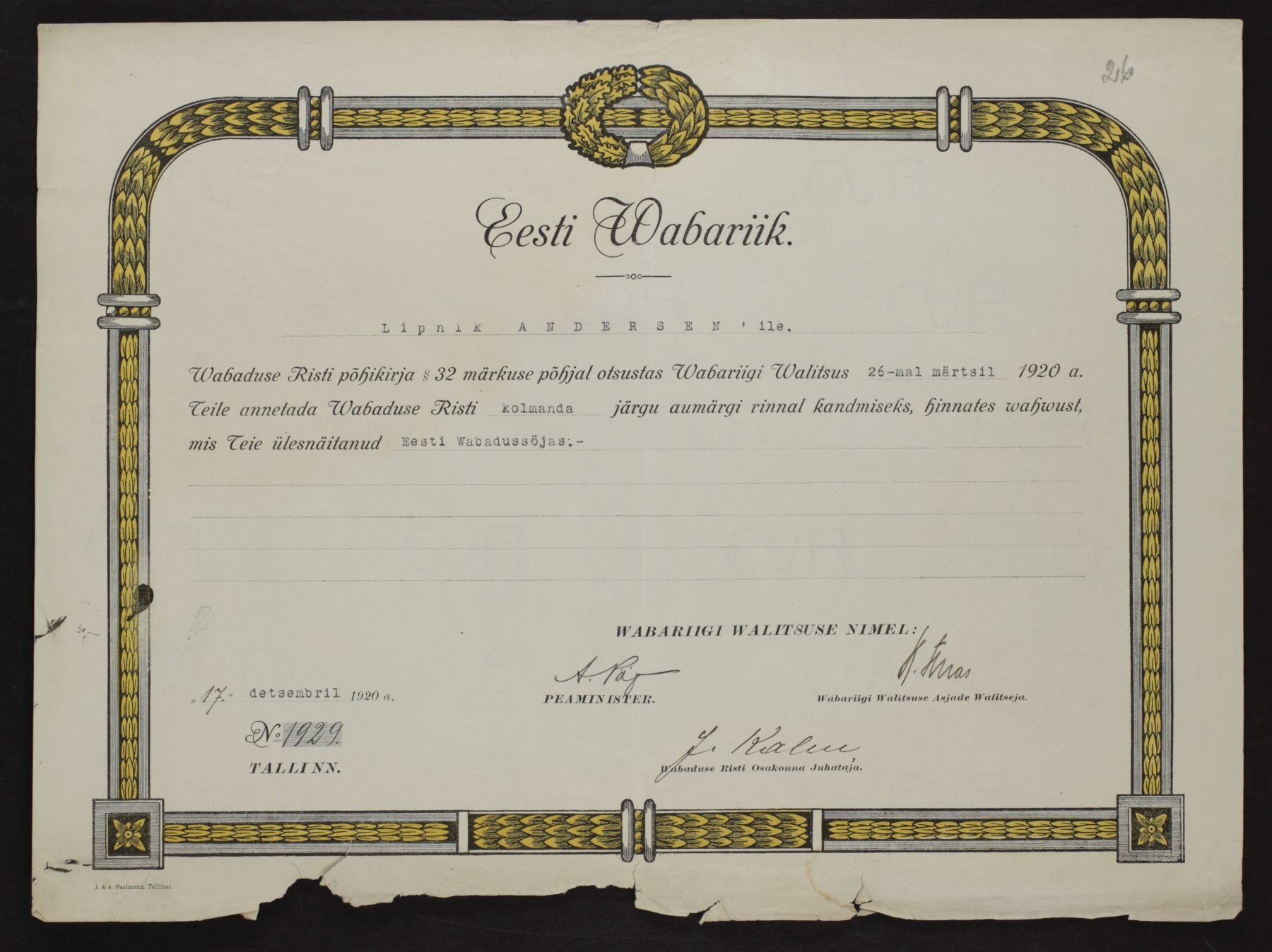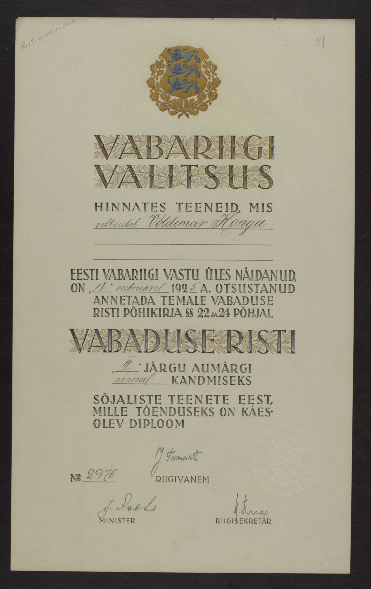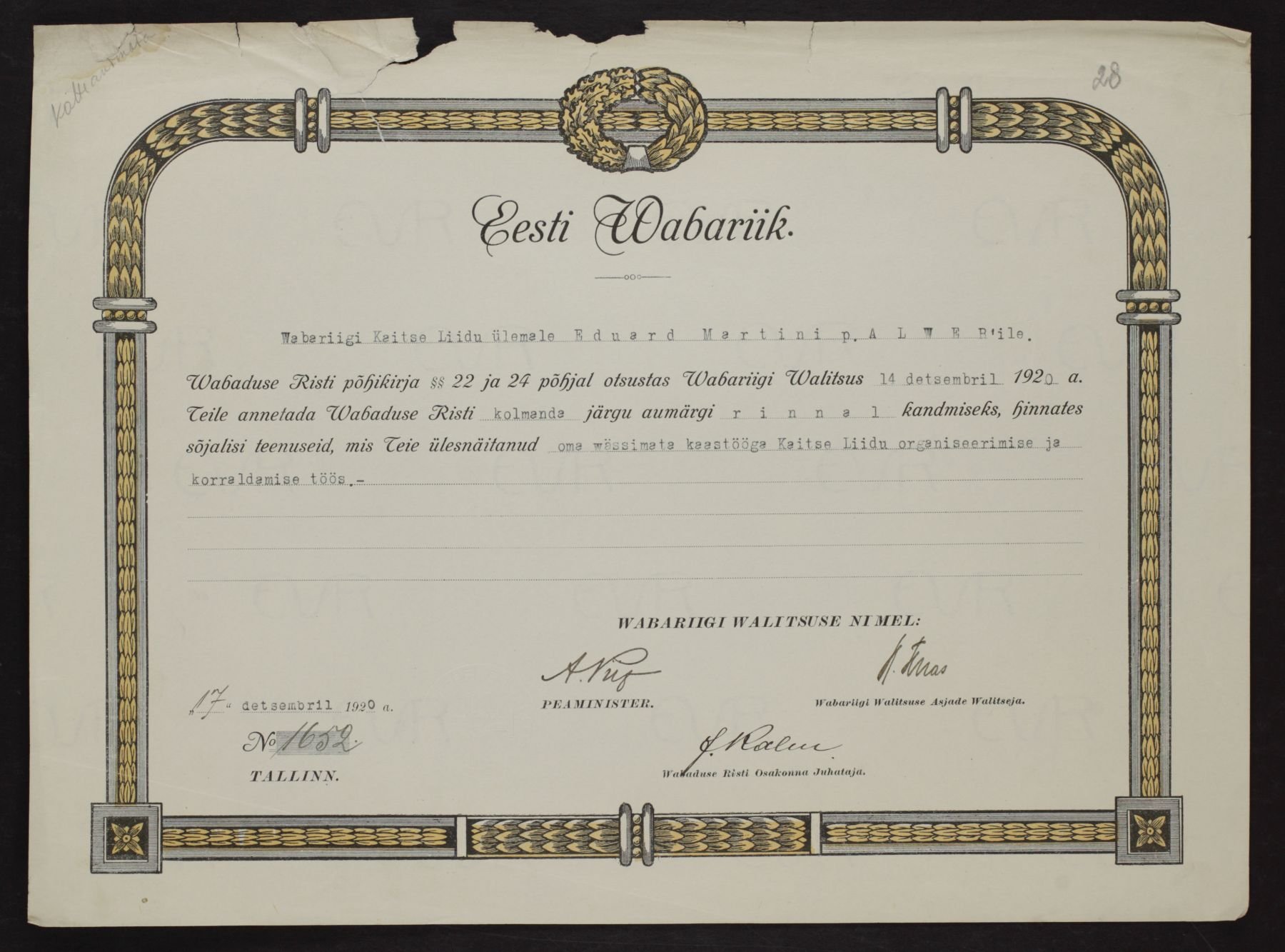 Vabadusristi tunnistused ...