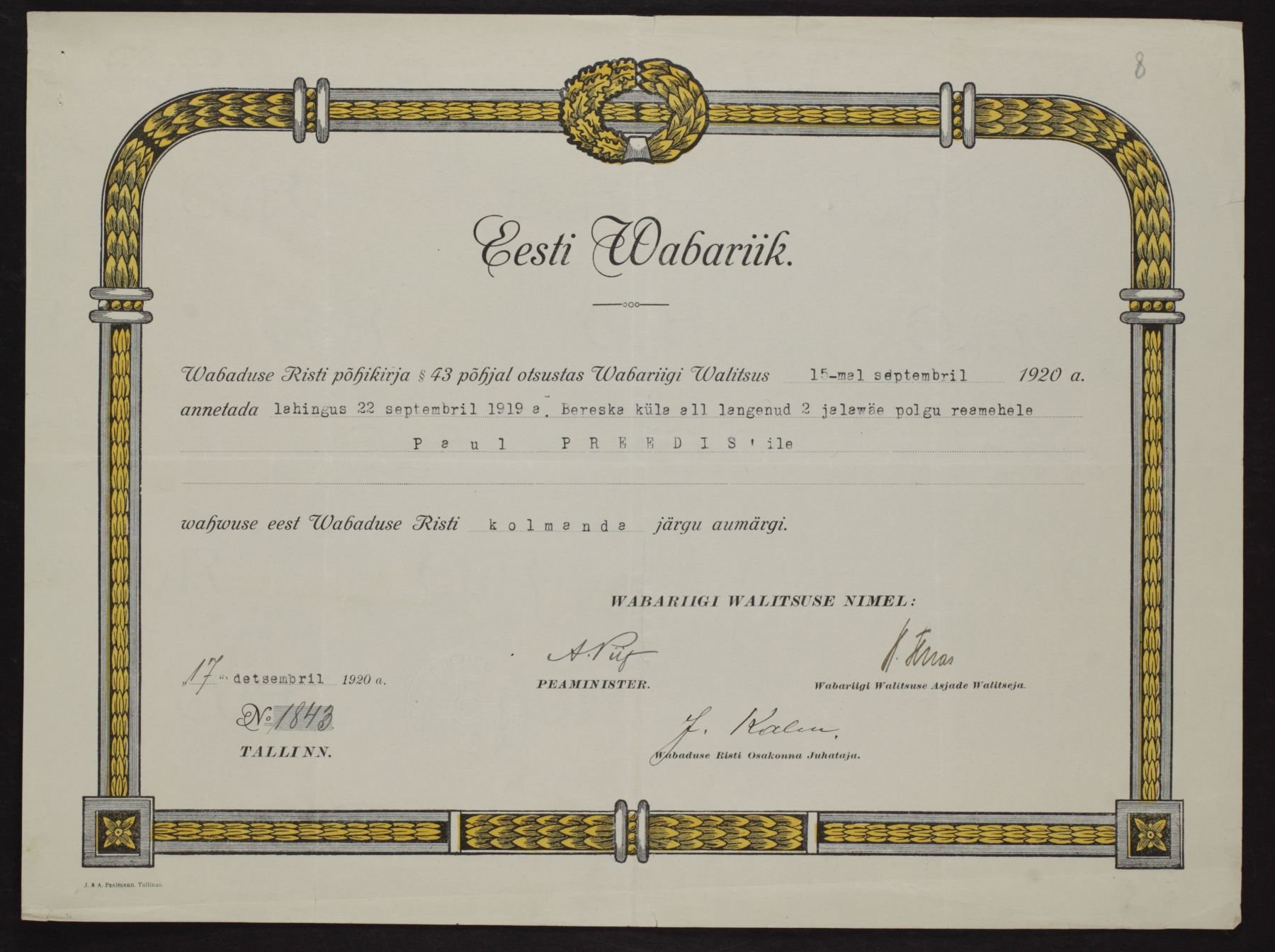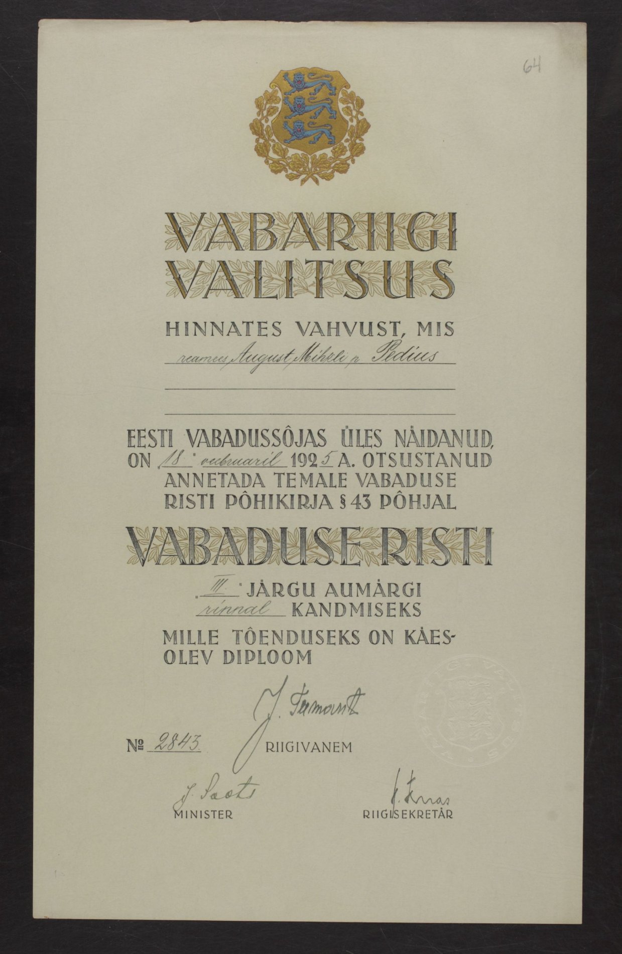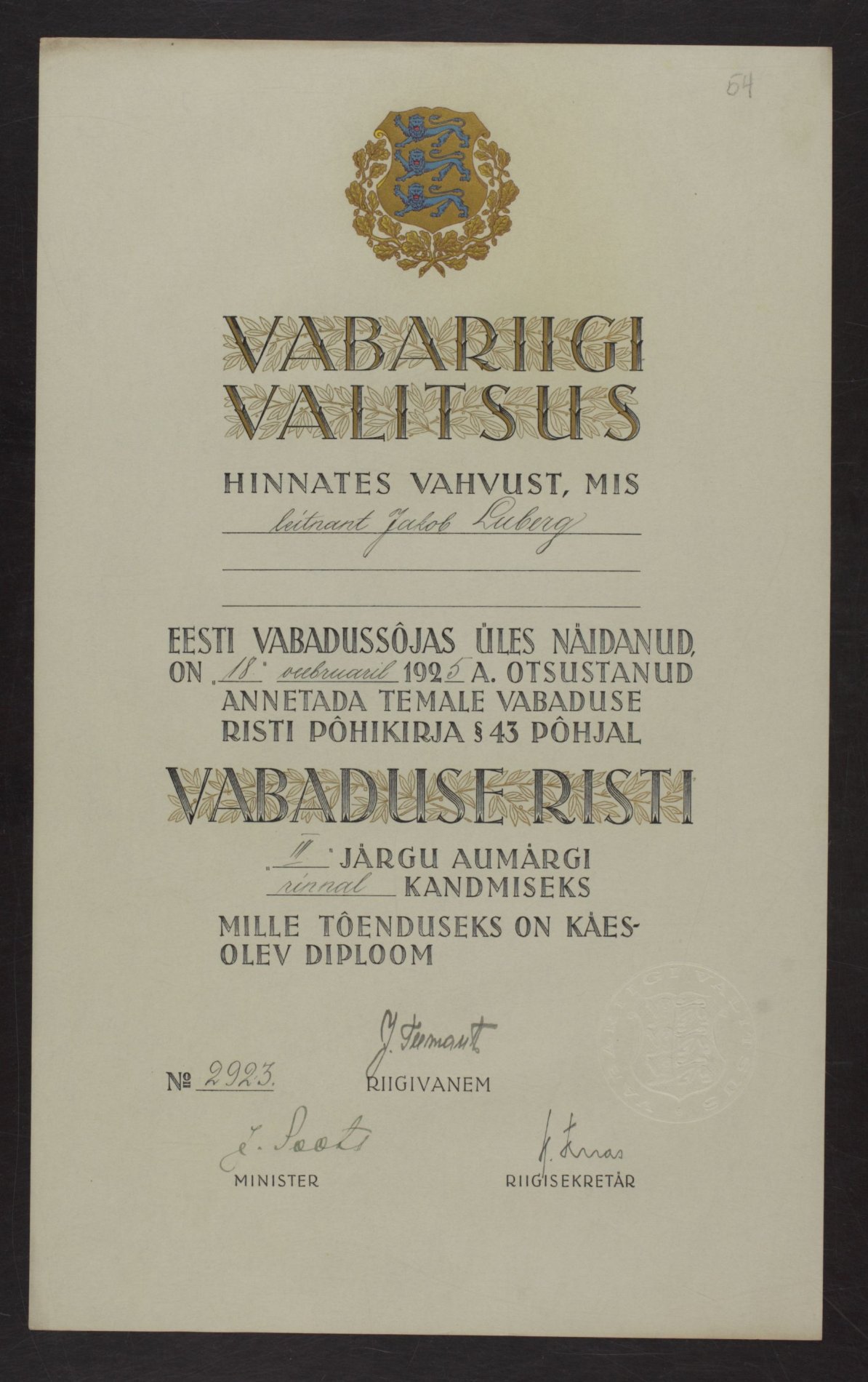 Vabadusristi tunnistused ...
