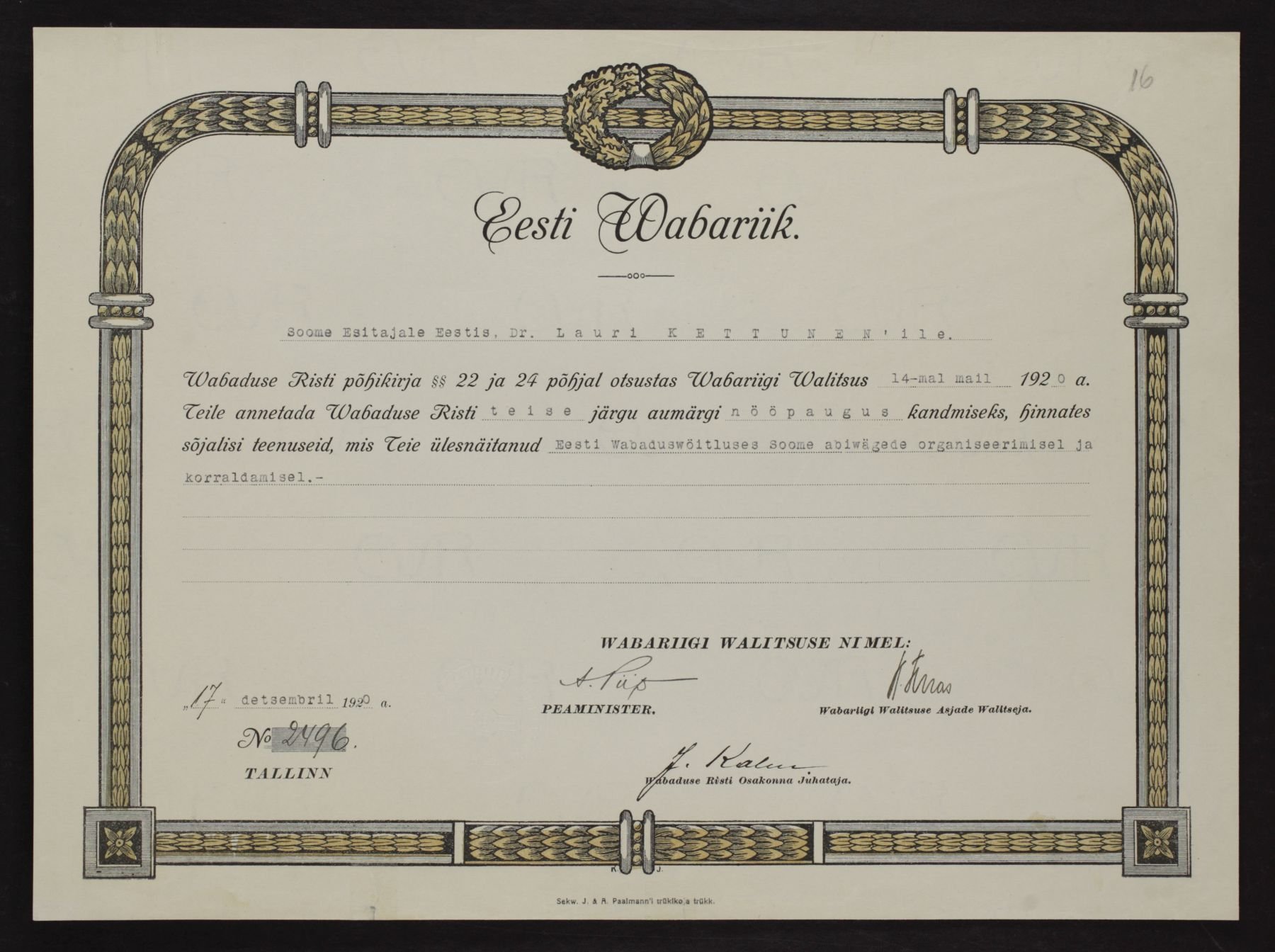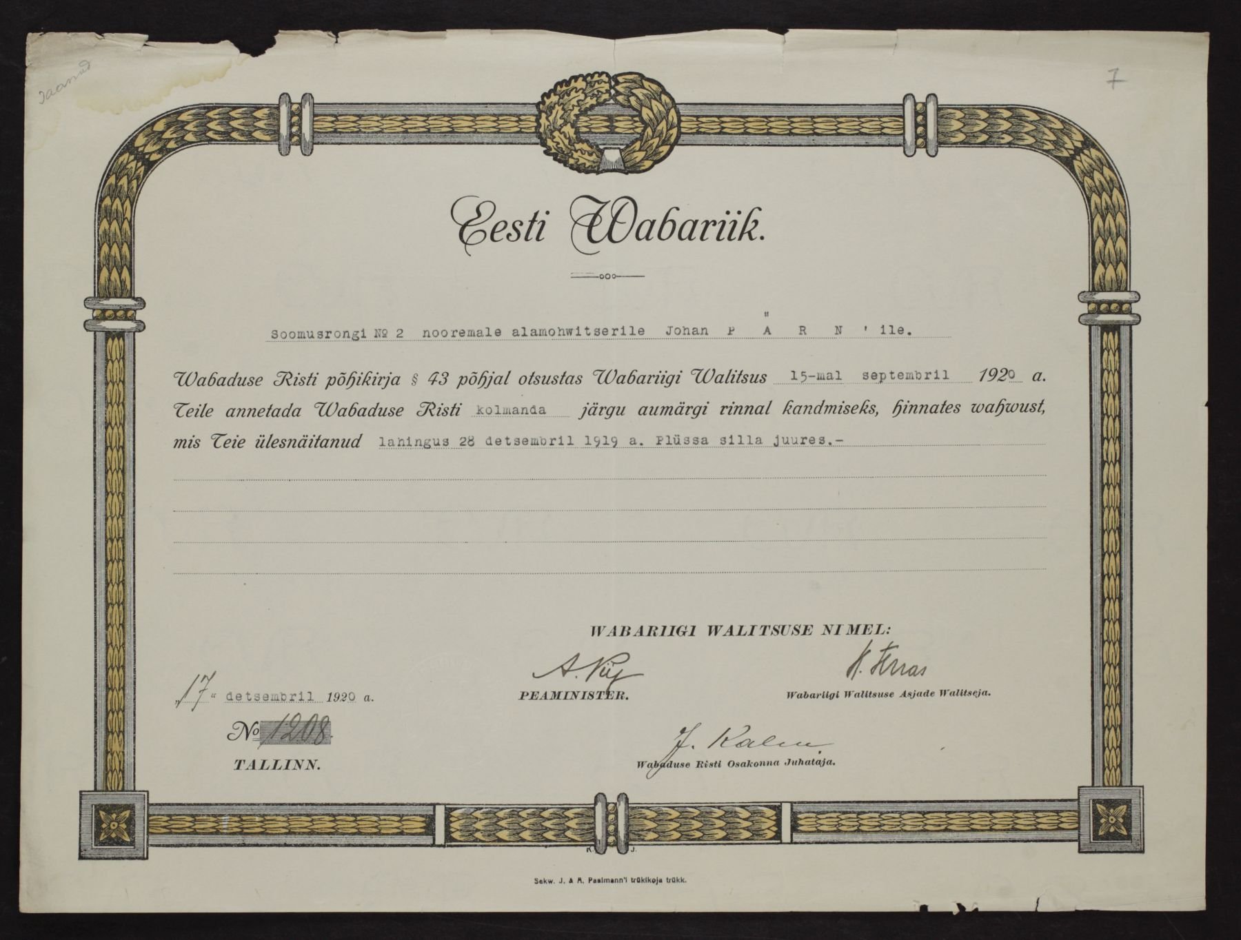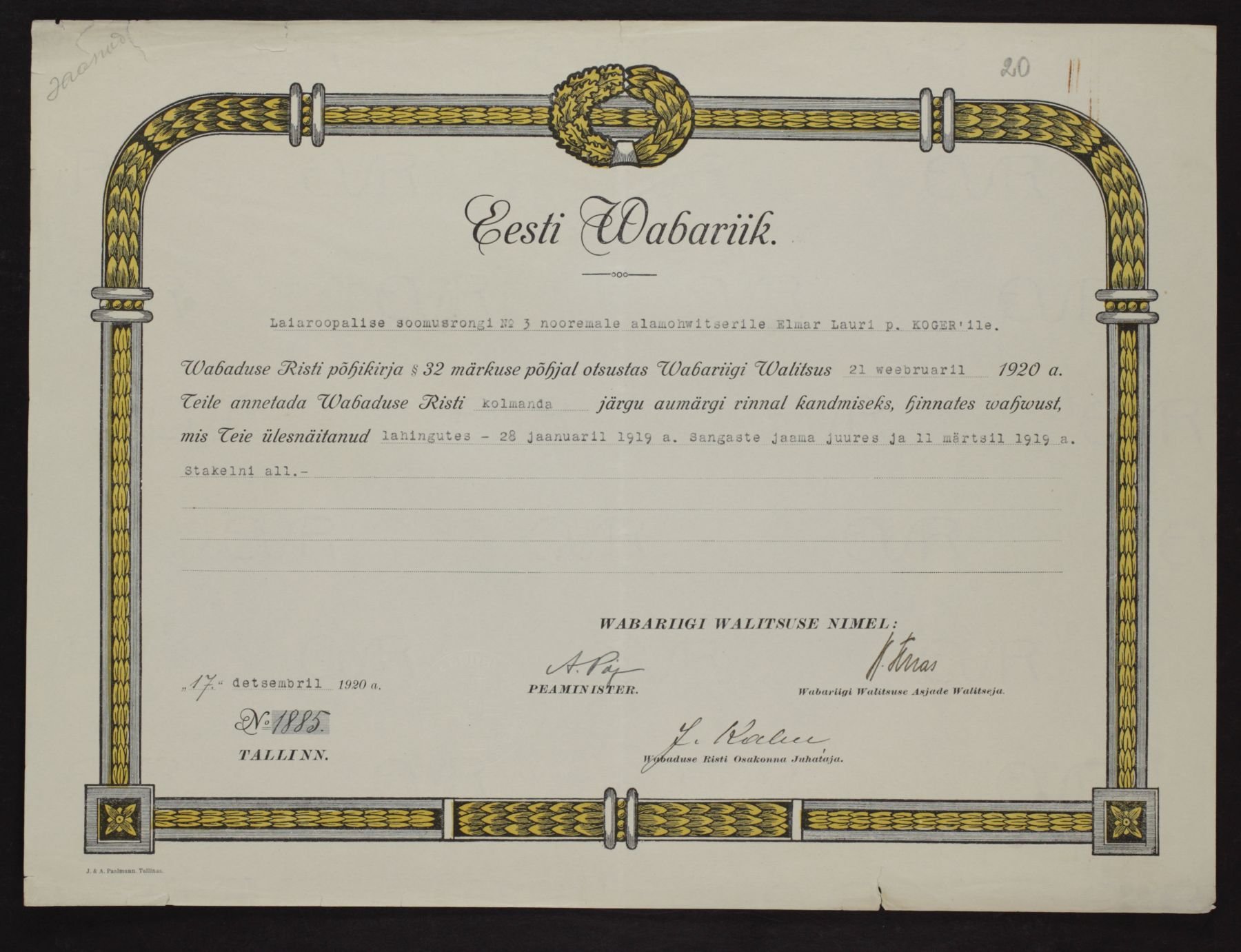 Re: Vabadusristi tunnistused ...