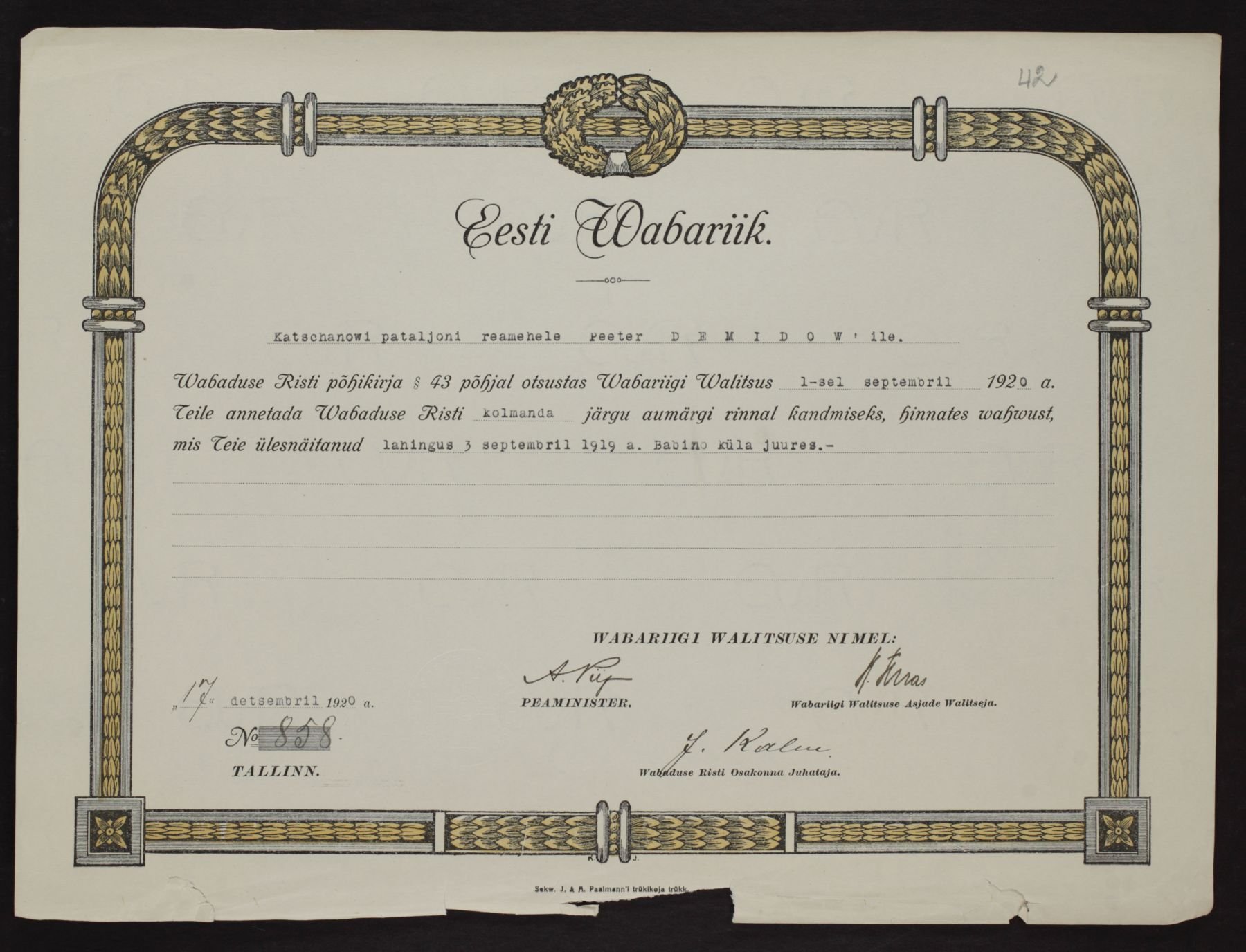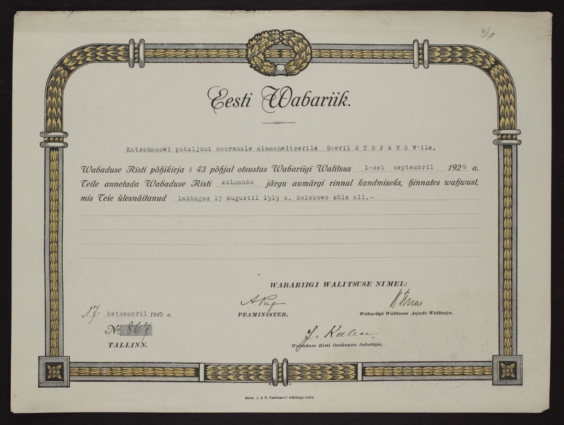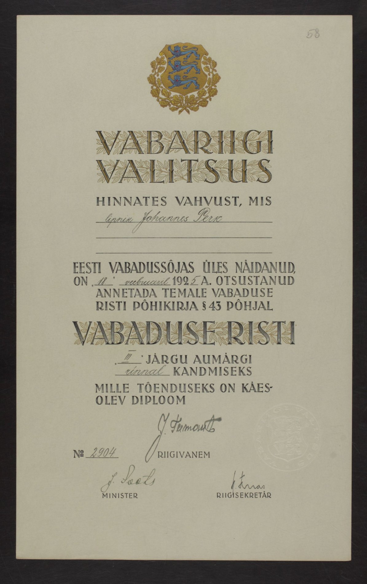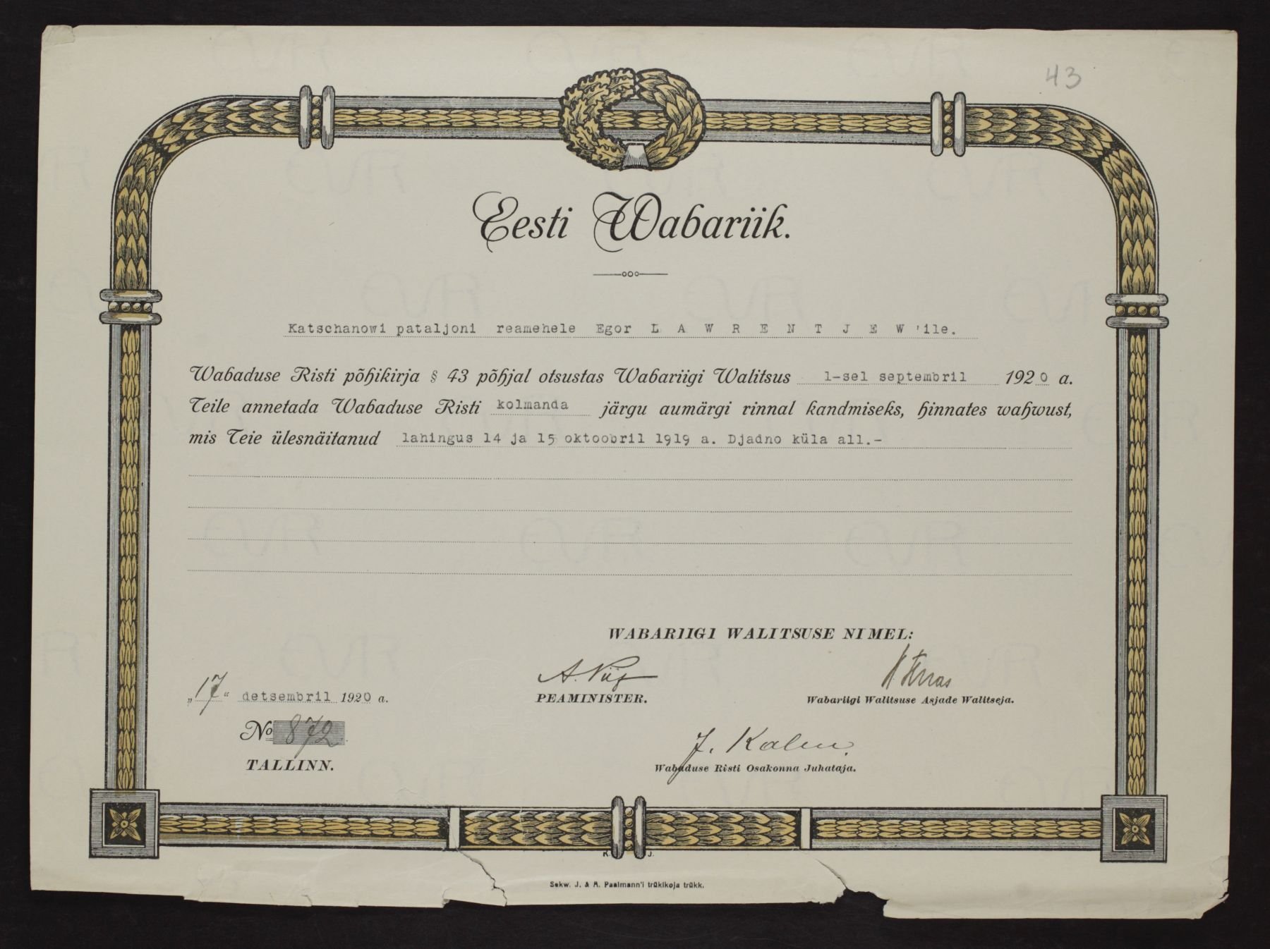 Re: Vabadusristi tunnistused ...