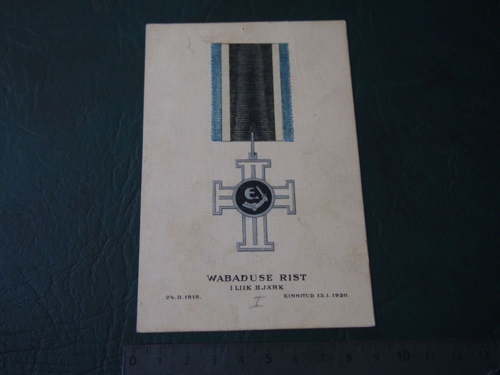 Postkaardid Vabaduse Ristidega 3.50 tk. Üks president Arnold Rüütli autogrammiga 10.-