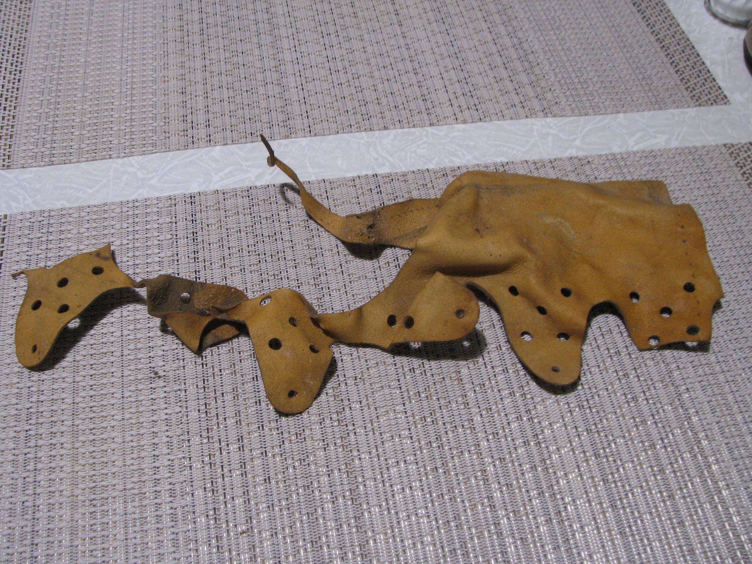 O: Saksa kiivri nahkvoodri materjali.