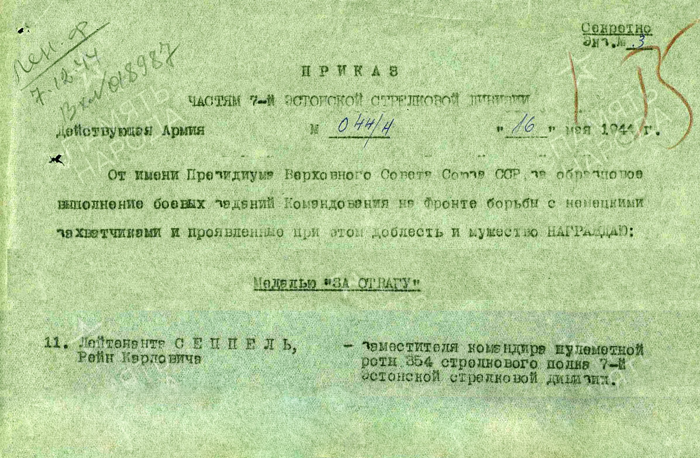 Lipnik Rein Seppeli märk, mobiliseeriti 17.08.1941 Punaarmeesse.