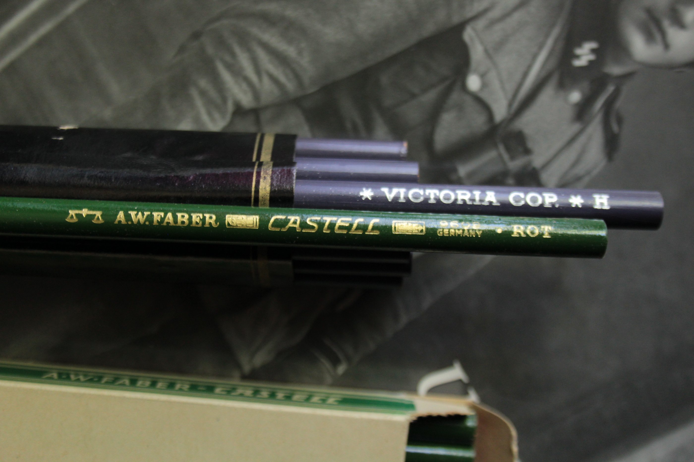 Sõjaaegsed avamata pakendid saksa pliiatseid Faber Castell ja Victoria.